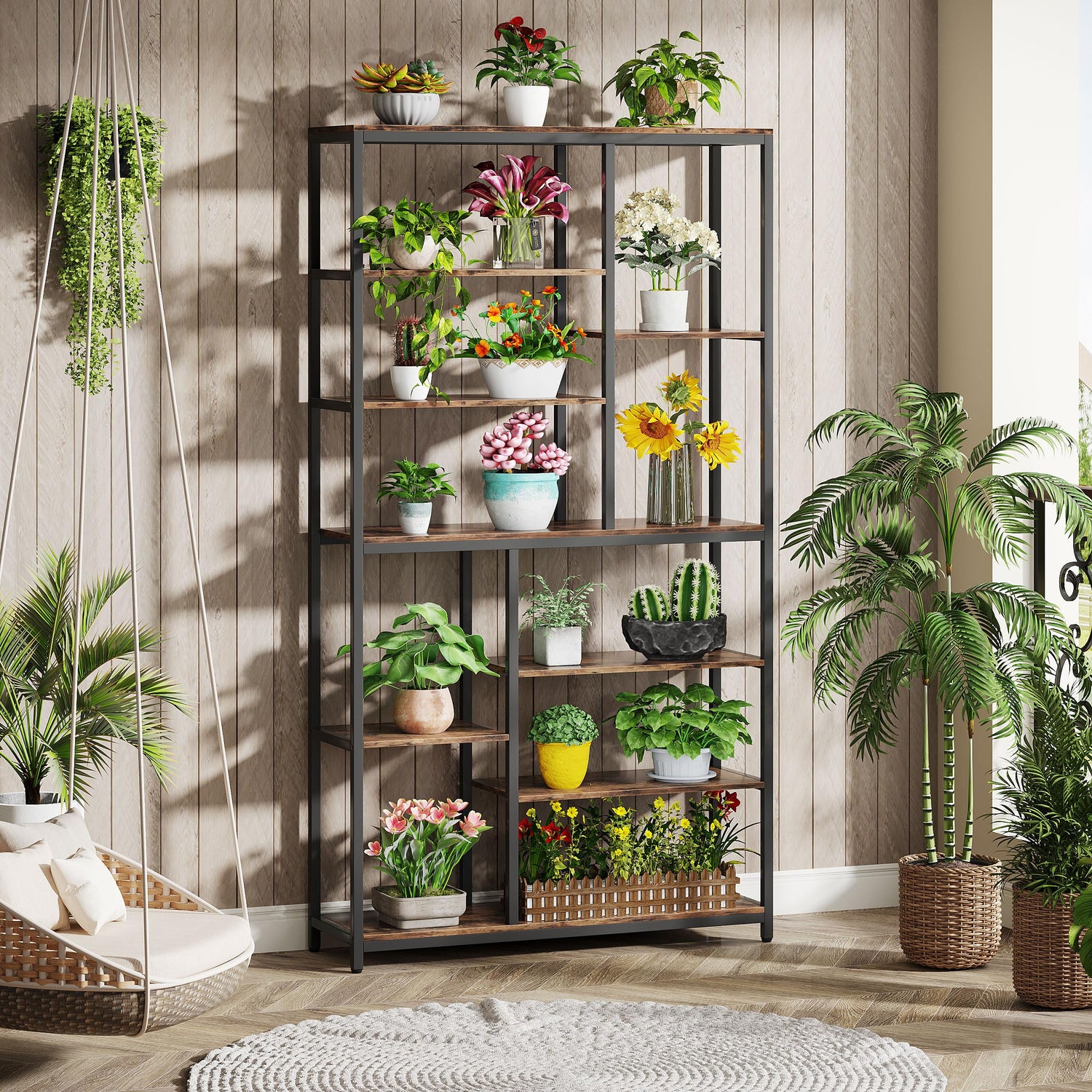 Tribesigns 79-Inch Tall Staggered Bookshelf, Industrial Bookcase with 8 Open Shelves, Wood and Metal Etagere Display Shelf for Living Room, Home and Office
