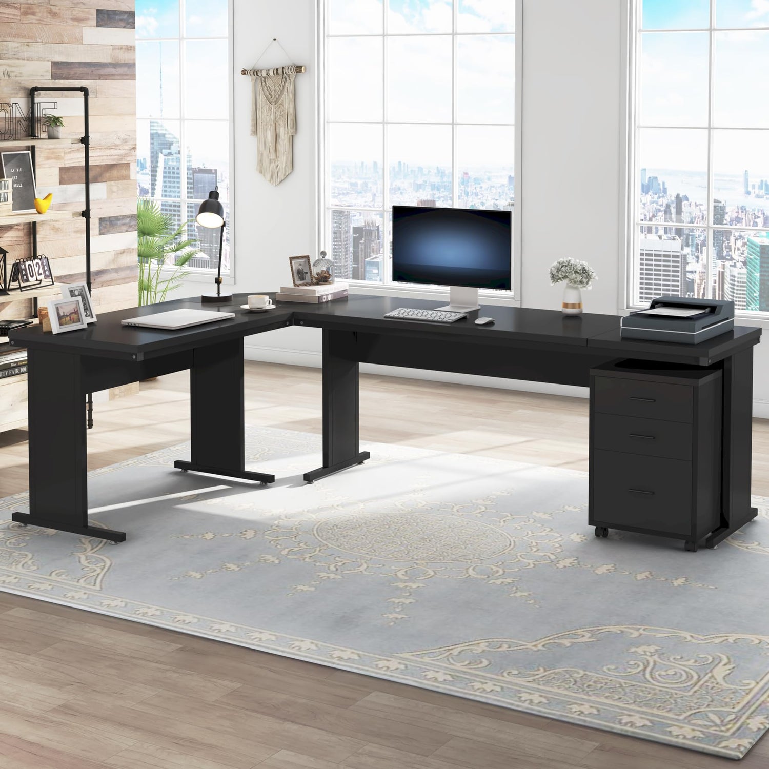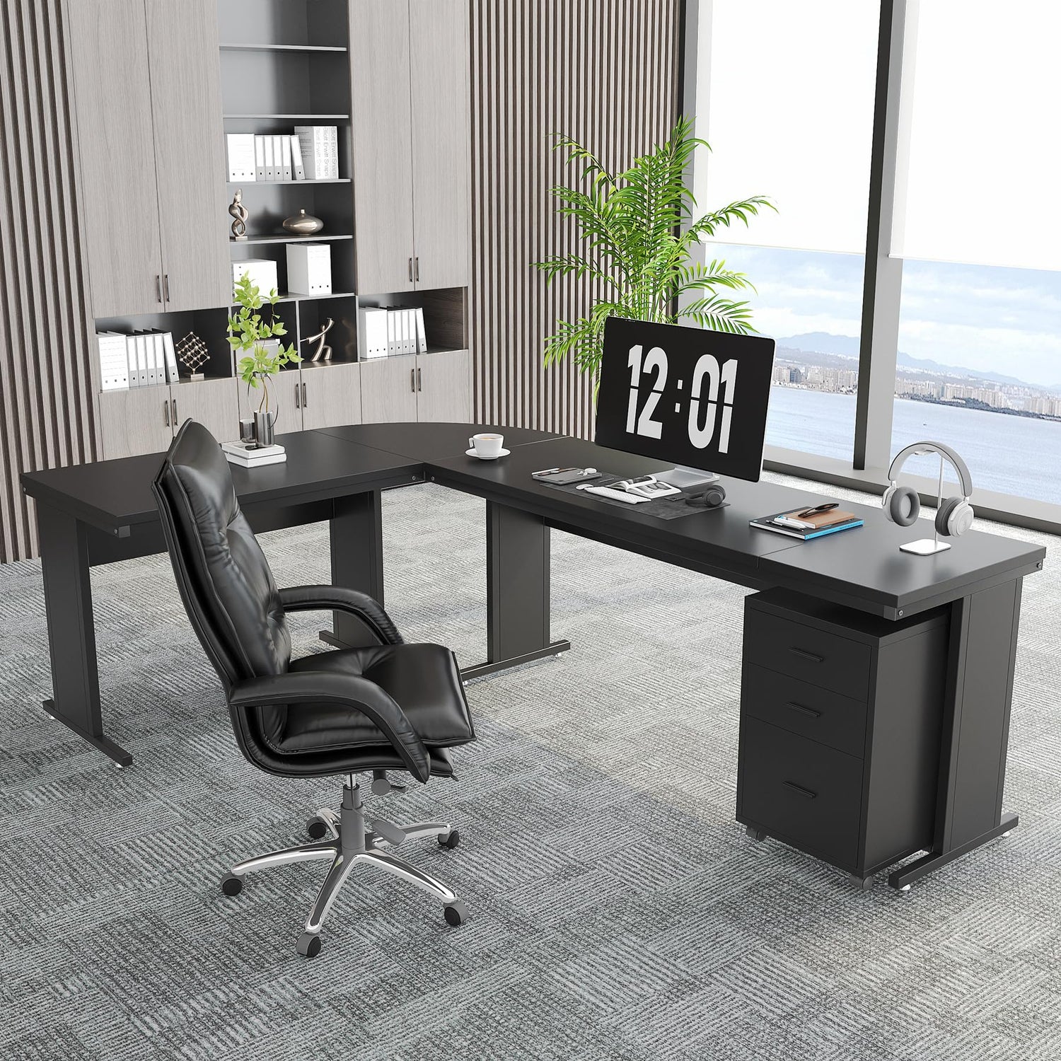Tribesigns 83" L-Shaped Executive Desk, Large Office Desk with 3-Drawer Mobile File Cabinet, Industrial Computer Desk with Storage Drawers, Business Furniture Table Workstation for Home Office (Black)