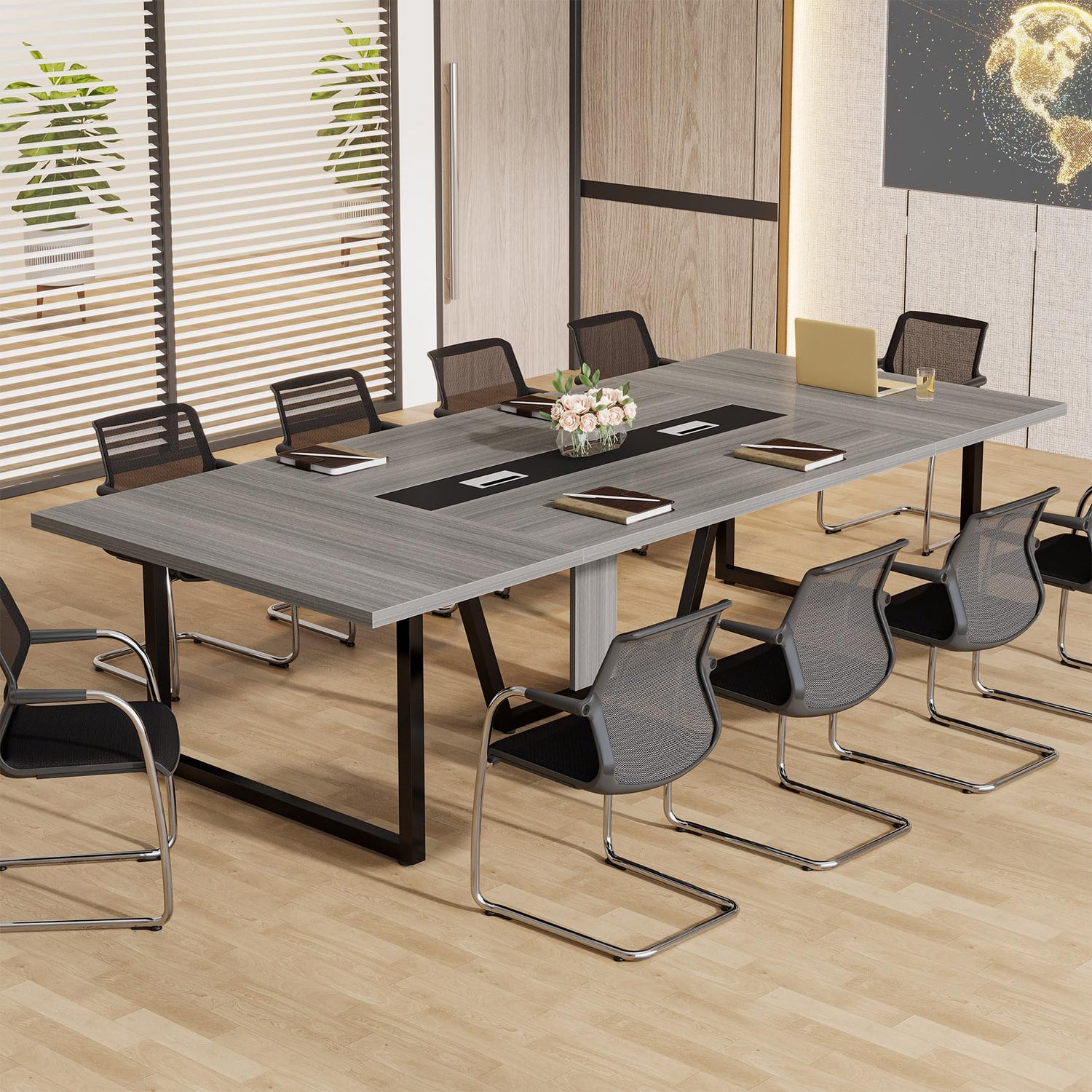 - [10 PEOPLE CONFERENCE TABLE]: Overall size: 94.49 L x 47.24 W x 29.53 H inches. Super large size makes this conference table comfortably seat 8-10 people. The spacious room under the table will help you stretch your legs after a long time sitting.