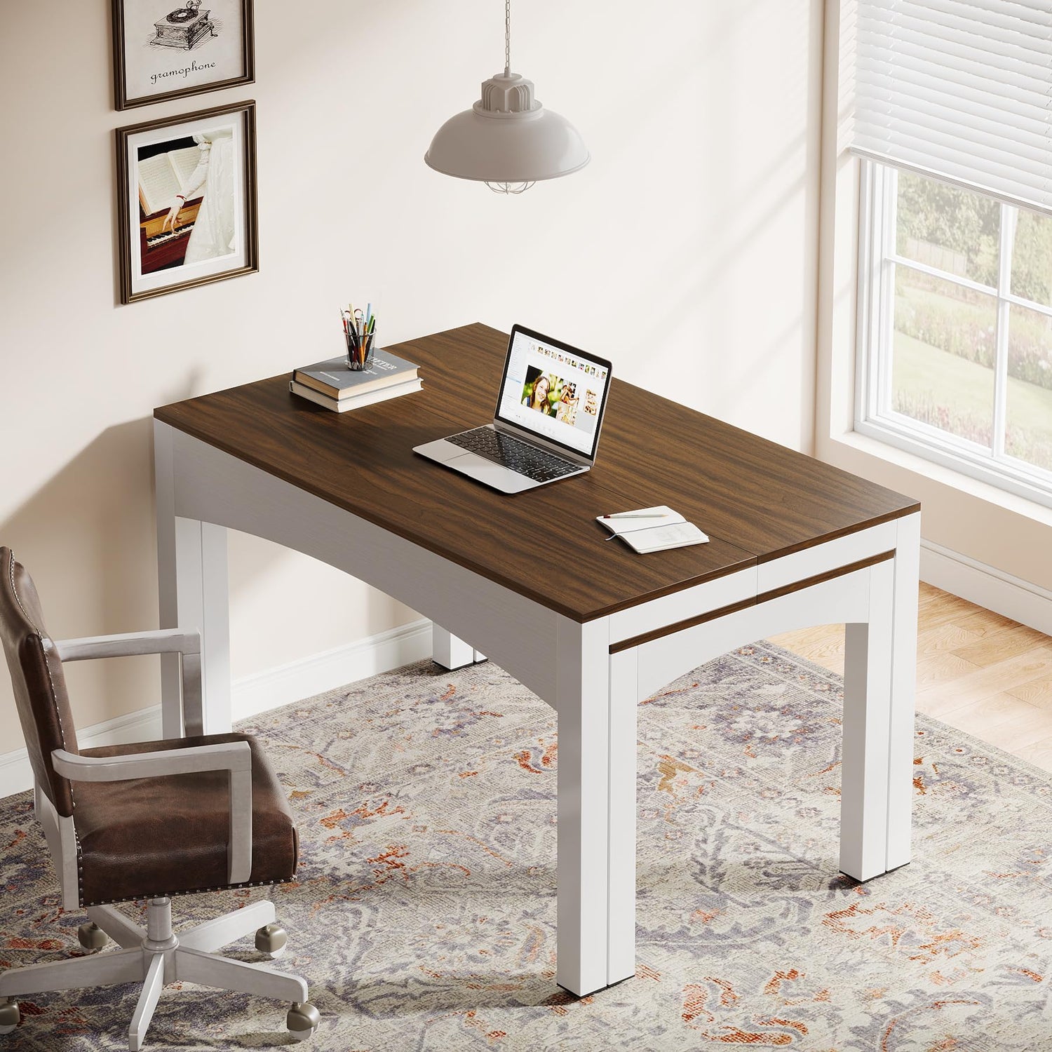 - Classic Farmhouse Aesthetics: With a nod to classic American farmhouse aesthetics, this computer desk gracefully pairs a rich walnut wood-finished tabletop with tasteful white legs, creating a cozy and inviting workspace in your home office.