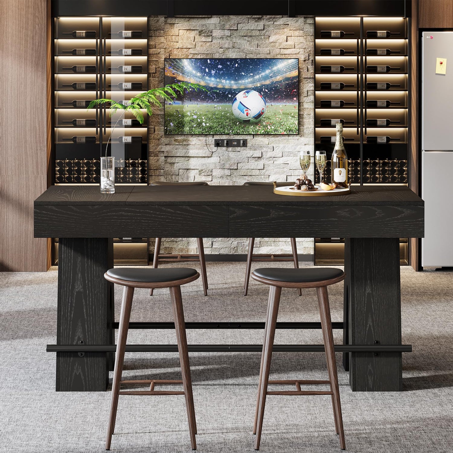 - Robust Construction: Our wood bar table is crafted from high-quality MDF for longevity. The sturdy 5.91-inch-thick tabletop and V-shaped legs confer excellent stability and load-bearing capacity