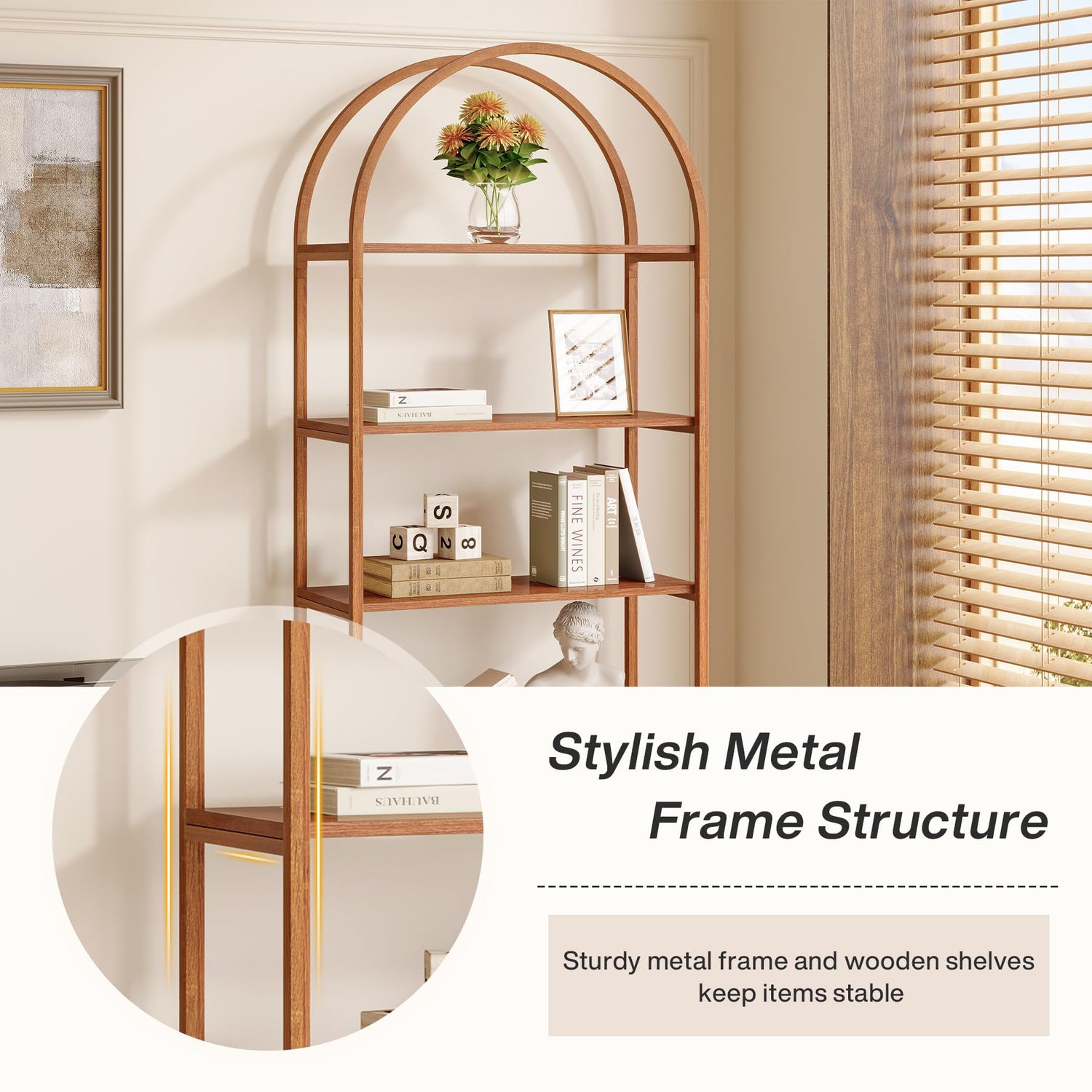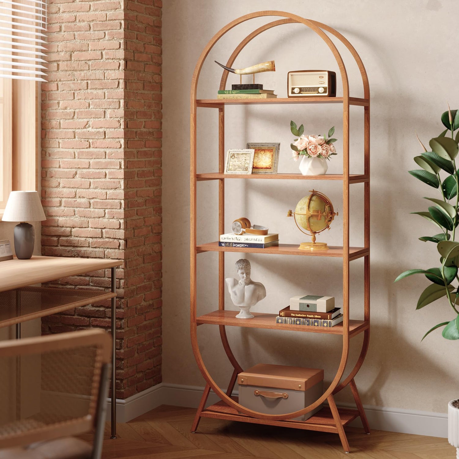 - Modern & Stylish Design: The stylish curved top design adds a sophisticated beauty to the entire five-layer bookshelf. Clean lines, unique appearance and bright brown & oak color make this modern multi-layer bookshelf suitable for any decor style