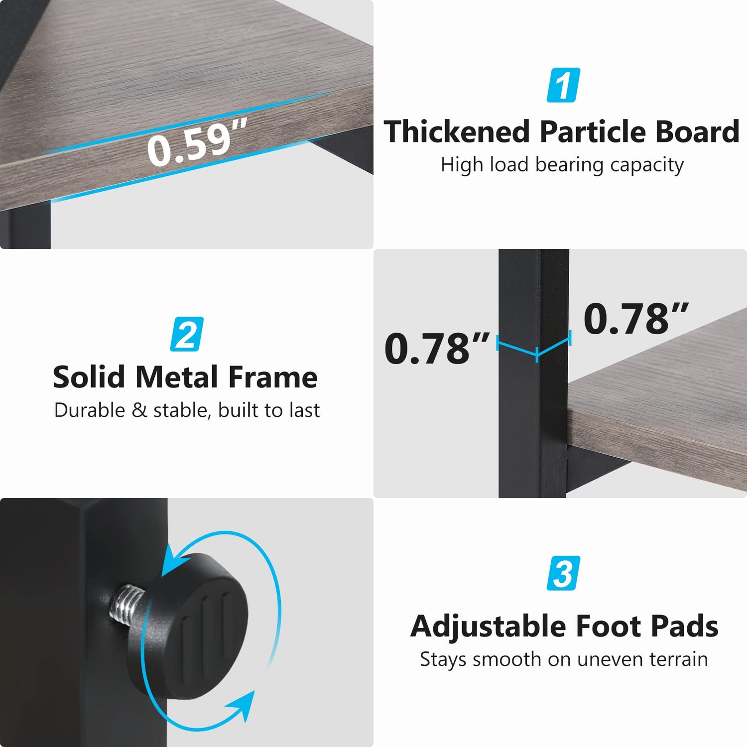 Crafted from high-quality particle board and sturdy black metal, this grey bookshelf is built to last. Its robust frame guarantees maximum stability and durability, providing peace of mind that your books and other possessions will remain securely stored for years to come.