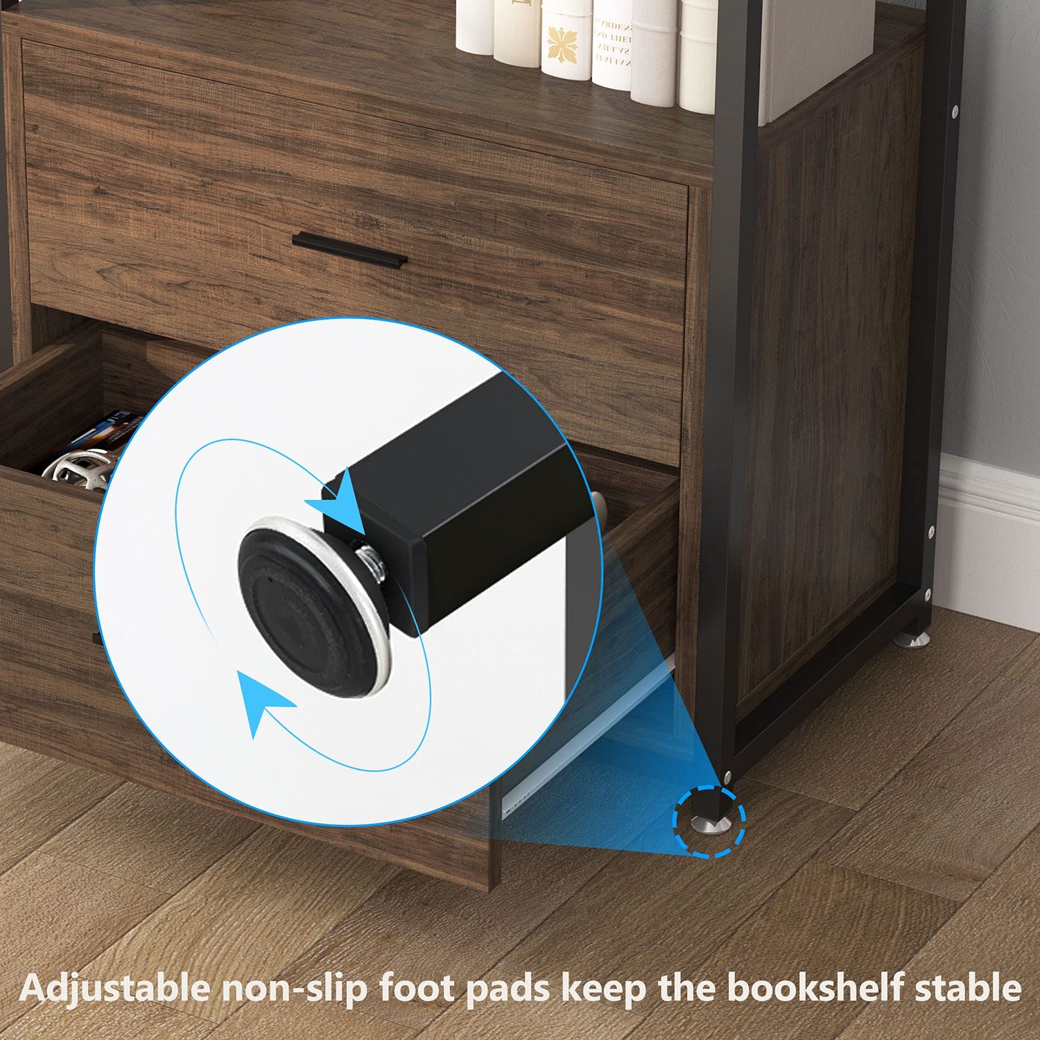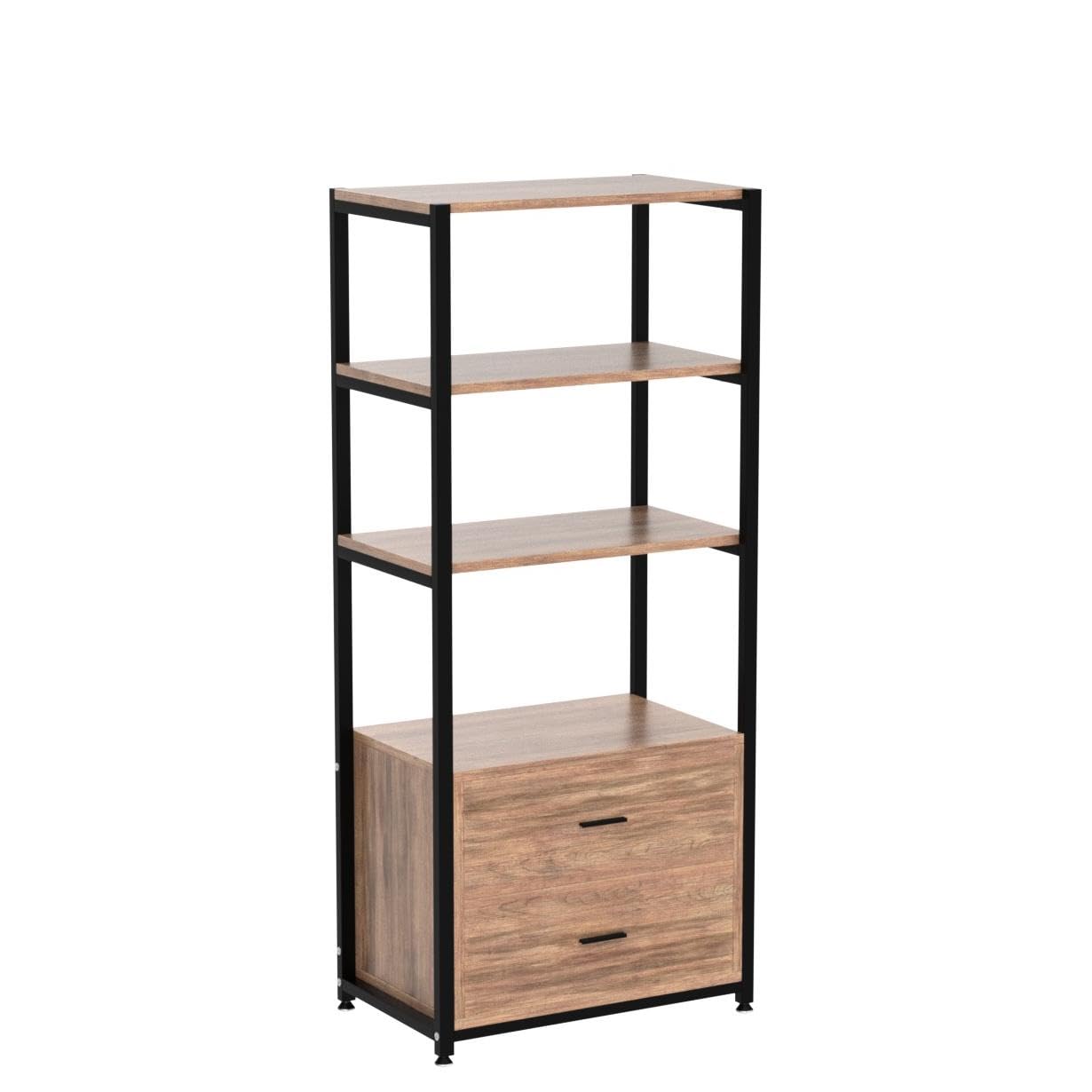 Elevate your home with the Rustic Industrial Etagere Bookcase with Drawers by Tribesigns, where practicality meets style, creating the ideal blend for modern living.