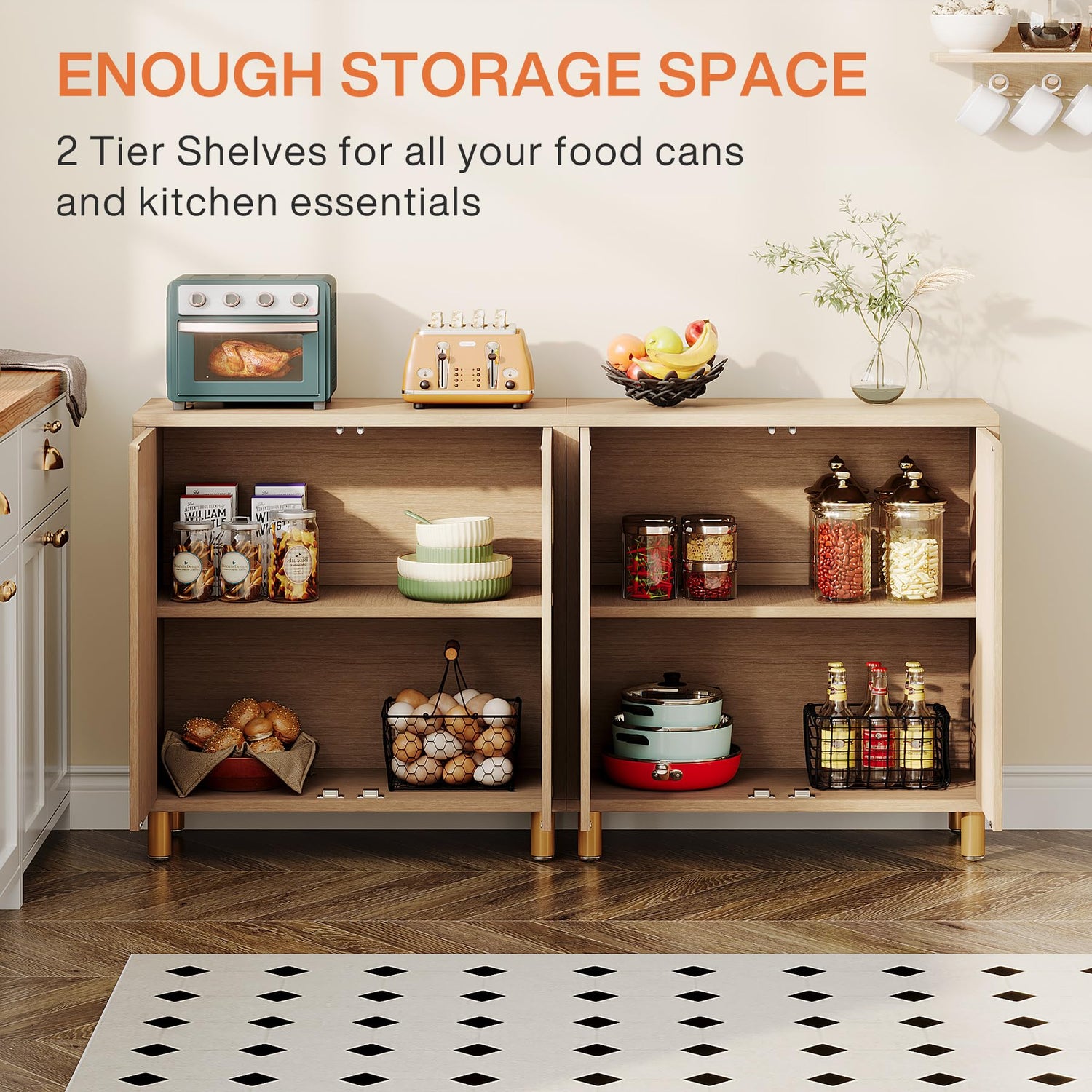 Tribesigns Buffet Sideboard Set of 2, 57-Inch Large Buffet Cabinet with Storage and 4 Doors, Modern Credenzas Coffee Console Accent Cabinet for Entryway, Kitchen, Living Room, Natural