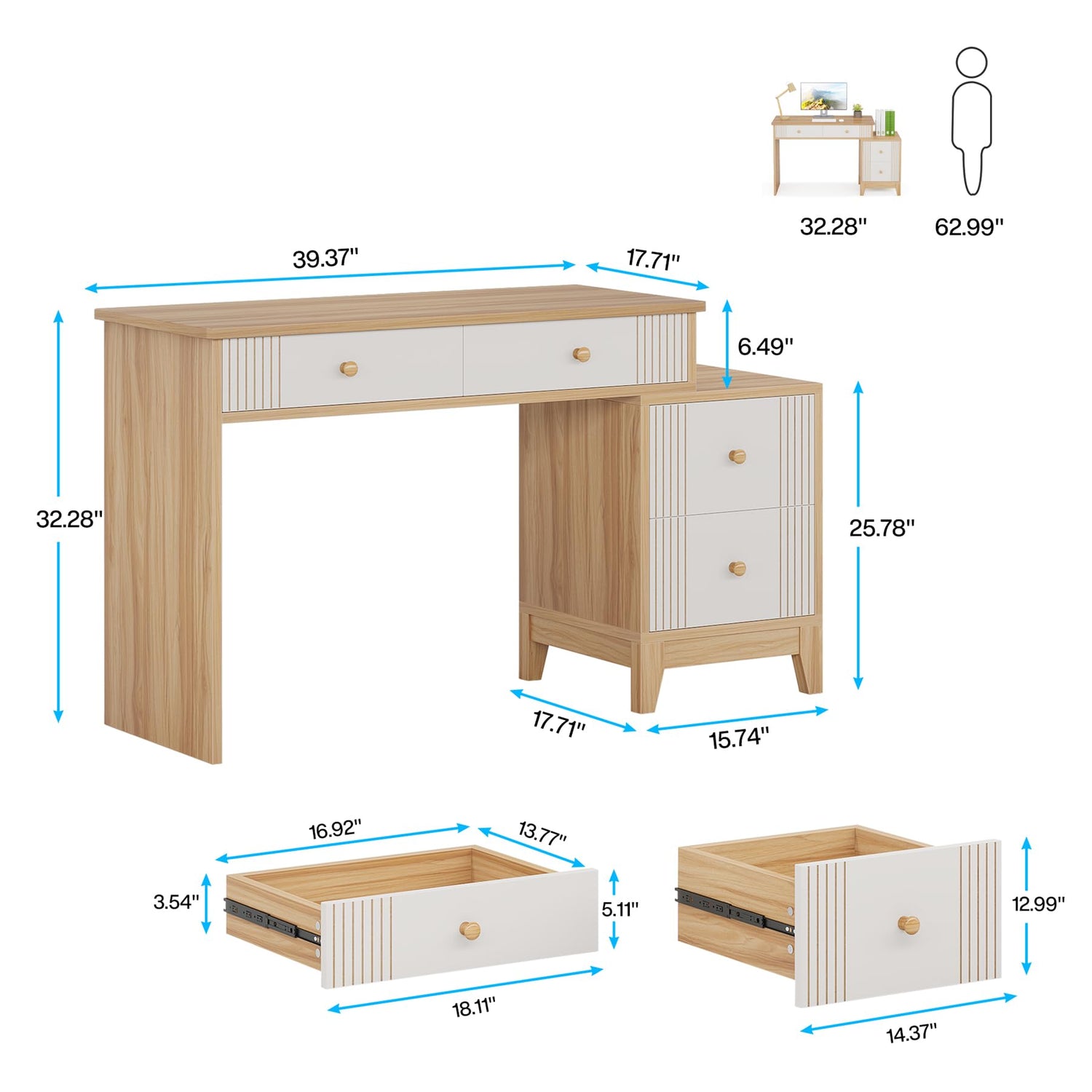 - [4-Drawer Computer Desk]: Our small computer desk is designed with 4 pull-out drawers that provide ample storage space for documents, remote devices, books, and other office supplies. Enjoy easy access to your office necessities while maintaining a clutter-free desktop with effortless ease!