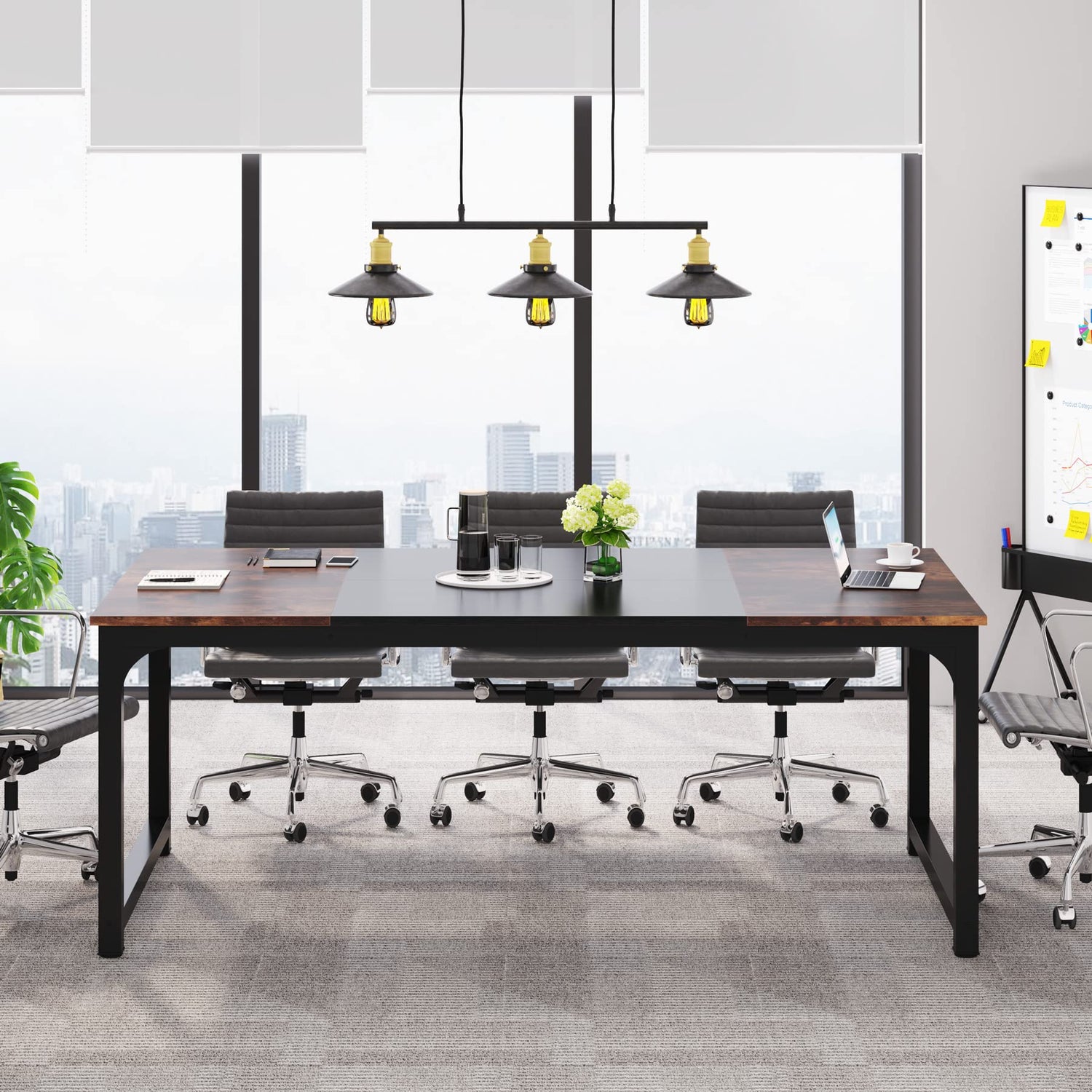 Tribesigns Conference Table, 6FT Meeting Seminar Table Rectangular Meeting Room Table, 70.8L x 31.5W x 29.5H, Rustic Brown/Black