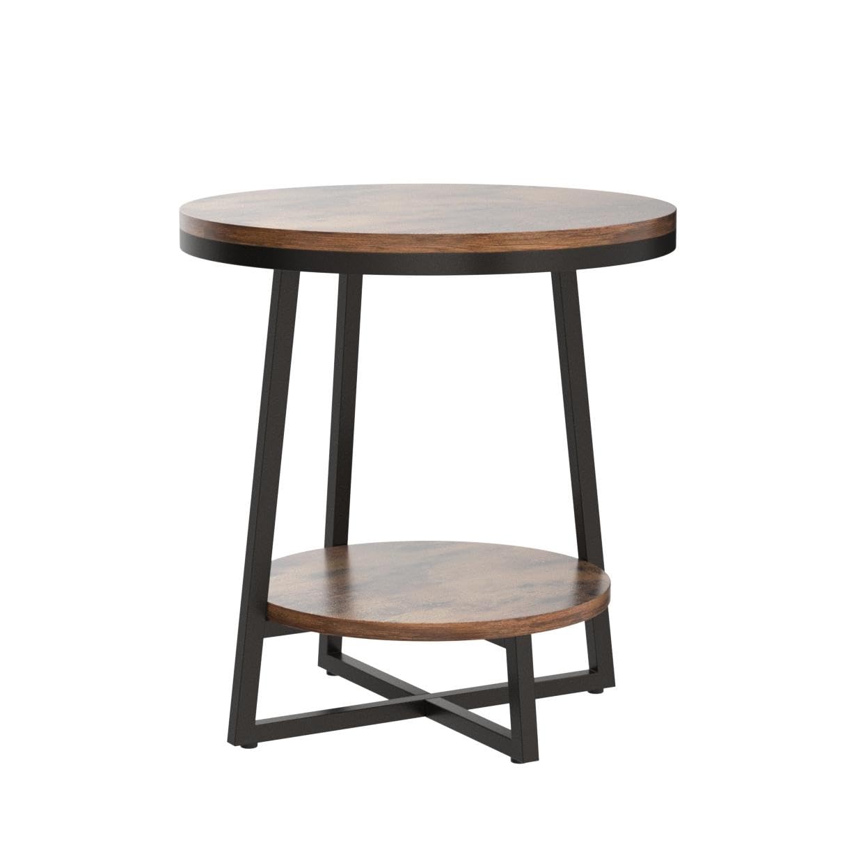Tribesigns End Table, 2 Tier Round Side Table with Storage Shelf, Industrial Nightstand Bedside Table Coffee Accent Table for Living Room Bedroom Small Space, Rustic Brown