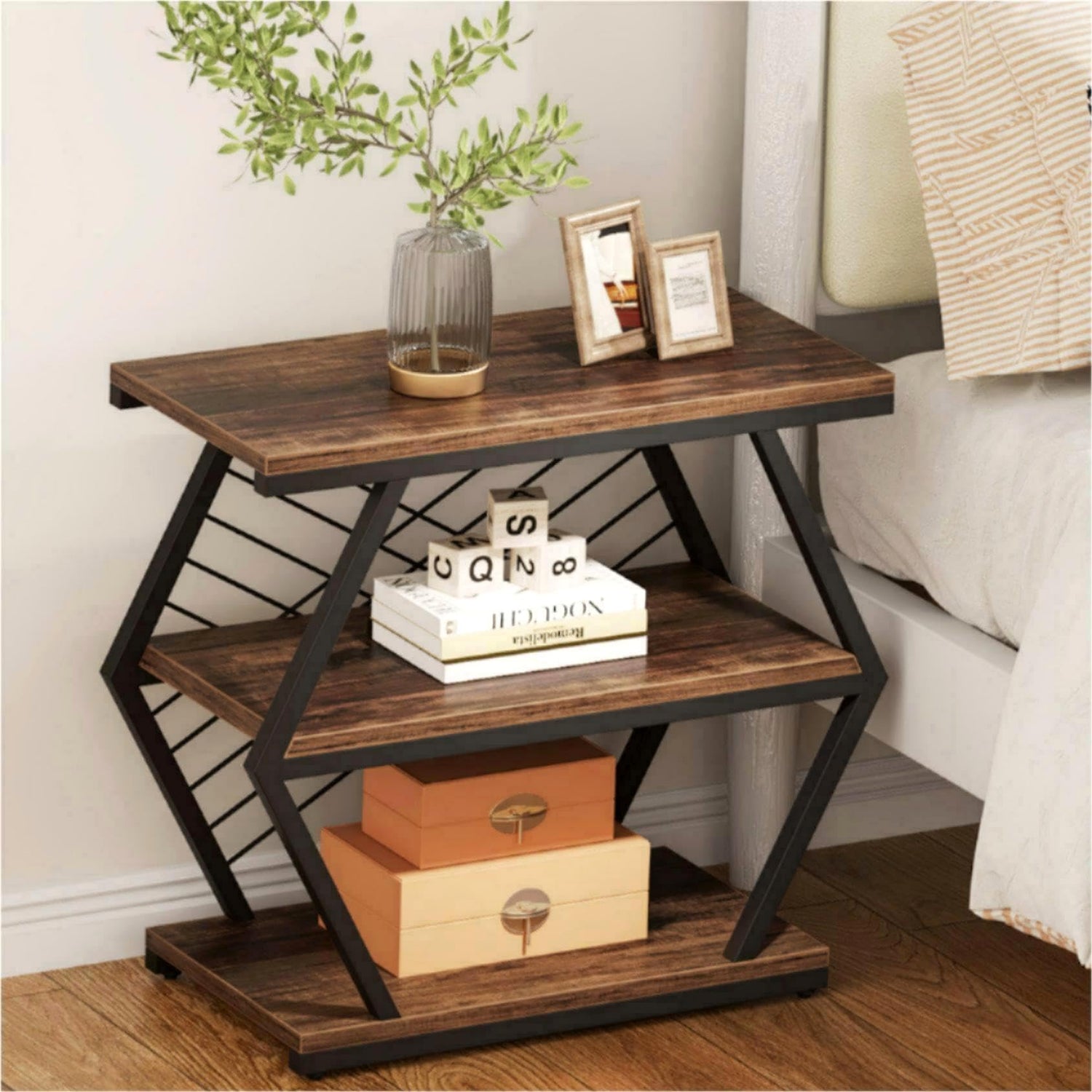 - 【Savvy Storage Solution】 Equipped with three spacious tiers, this end table offers ample room to store and display your favorite books, framed photos, potted plants, and more. As a bedside table, it's ideal for keeping night-time essentials within arm's reach.