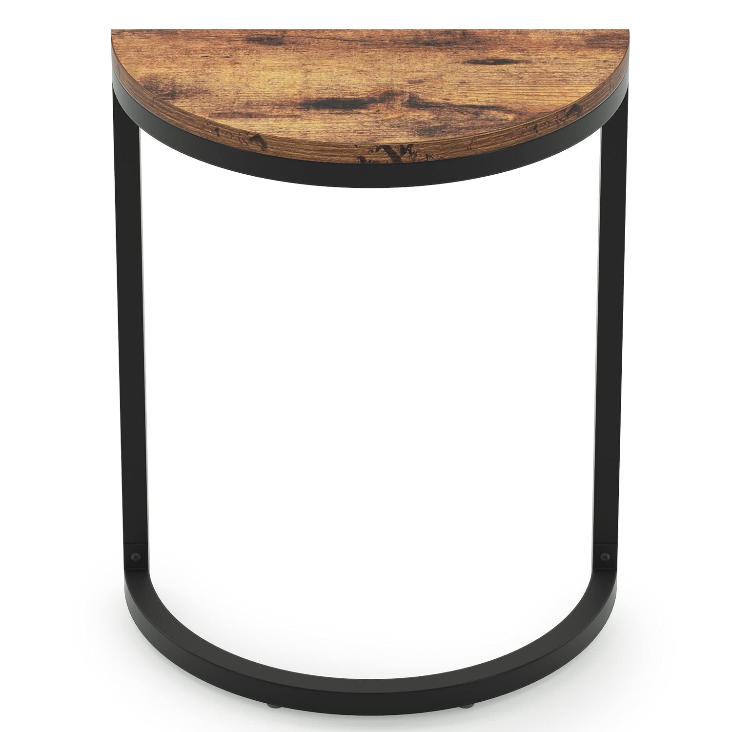 Tribesigns End Table Semi Circle, Small Half Round Side Table with Metal Frame, Wood Accent Table Slim C Table for Sofa Couch Living Room, Easy Assembly, 19.69" L x 9.84" W x 23.62" H