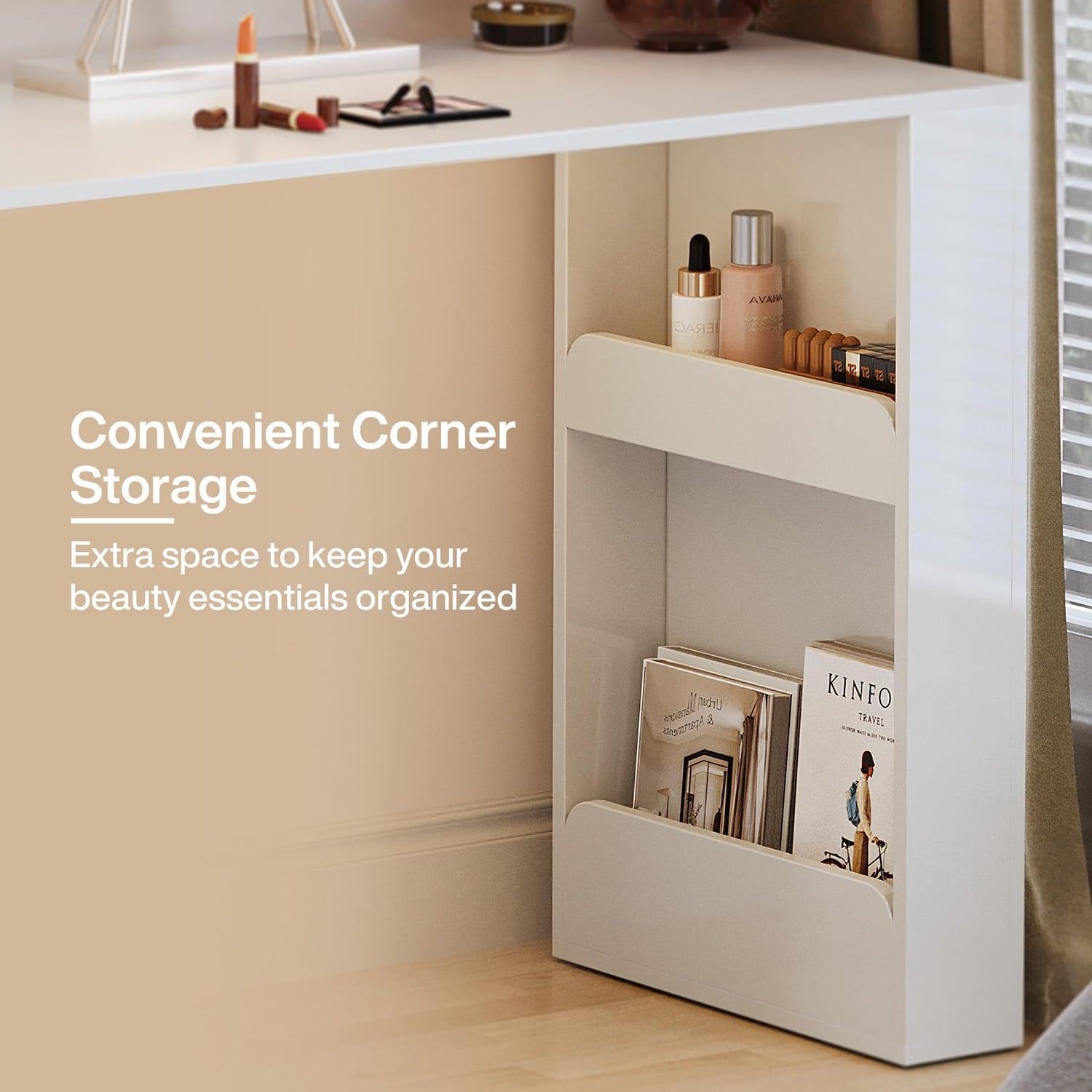 - Smooth & Quiet Metal Slides: Enjoy effortless, silent drawer access with premium metal slides for a peaceful beauty routine. Ideal for quiet mornings and late-night skincare, they bring convenience, elegance, and organization to your vanity