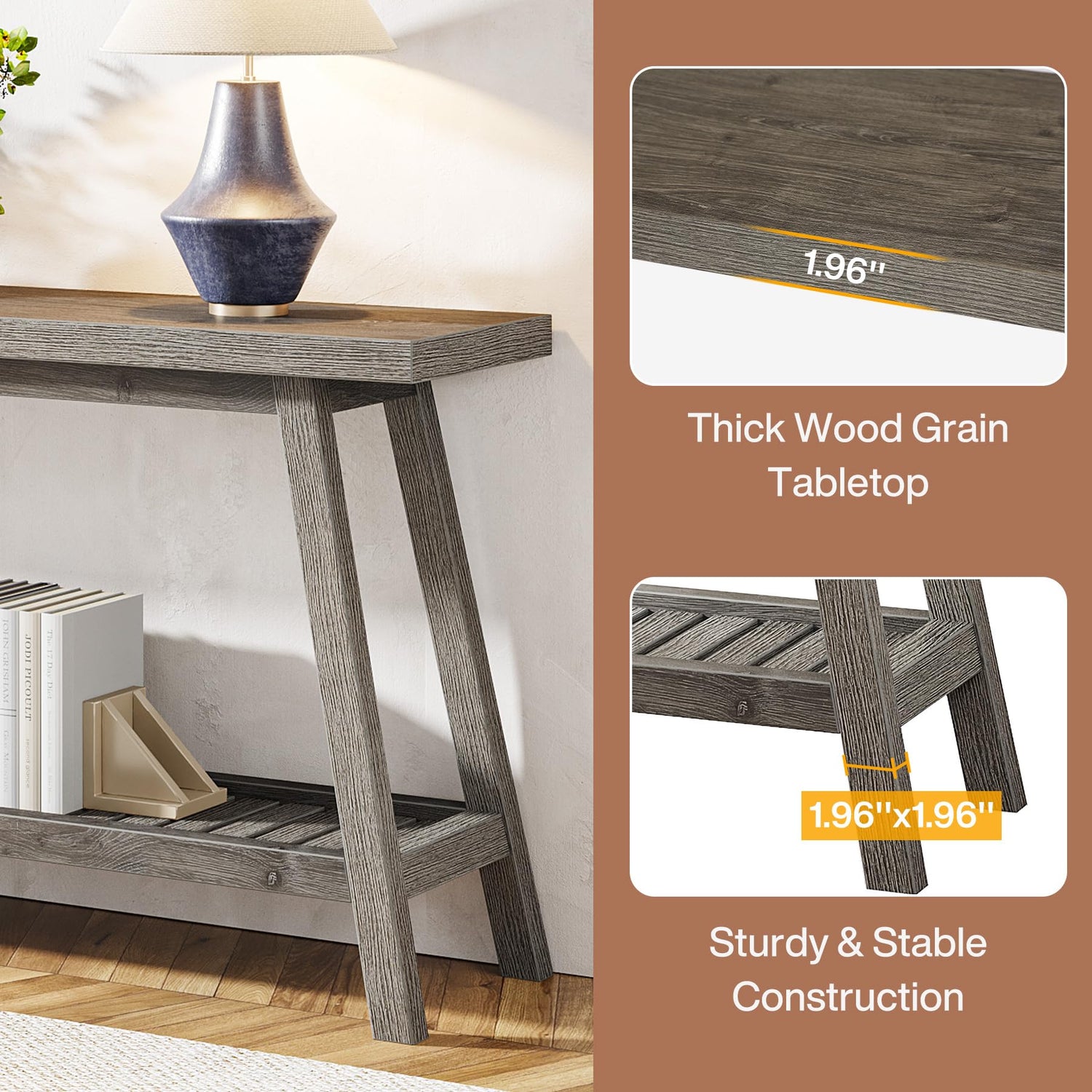 - Vintage Farmhouse Style: With its classic minimalist lines design, whole body vintage grey wood, and trapezoid heavy-duty base, this entryway table exudes a rustic farmhouse style outlook that will elevate the elegance of any home space. Whether you place it in your entryway, hallway, living room, foyer, or behind you couch, this wood sofa table is sure to amaze everyone with its stunning appearance.