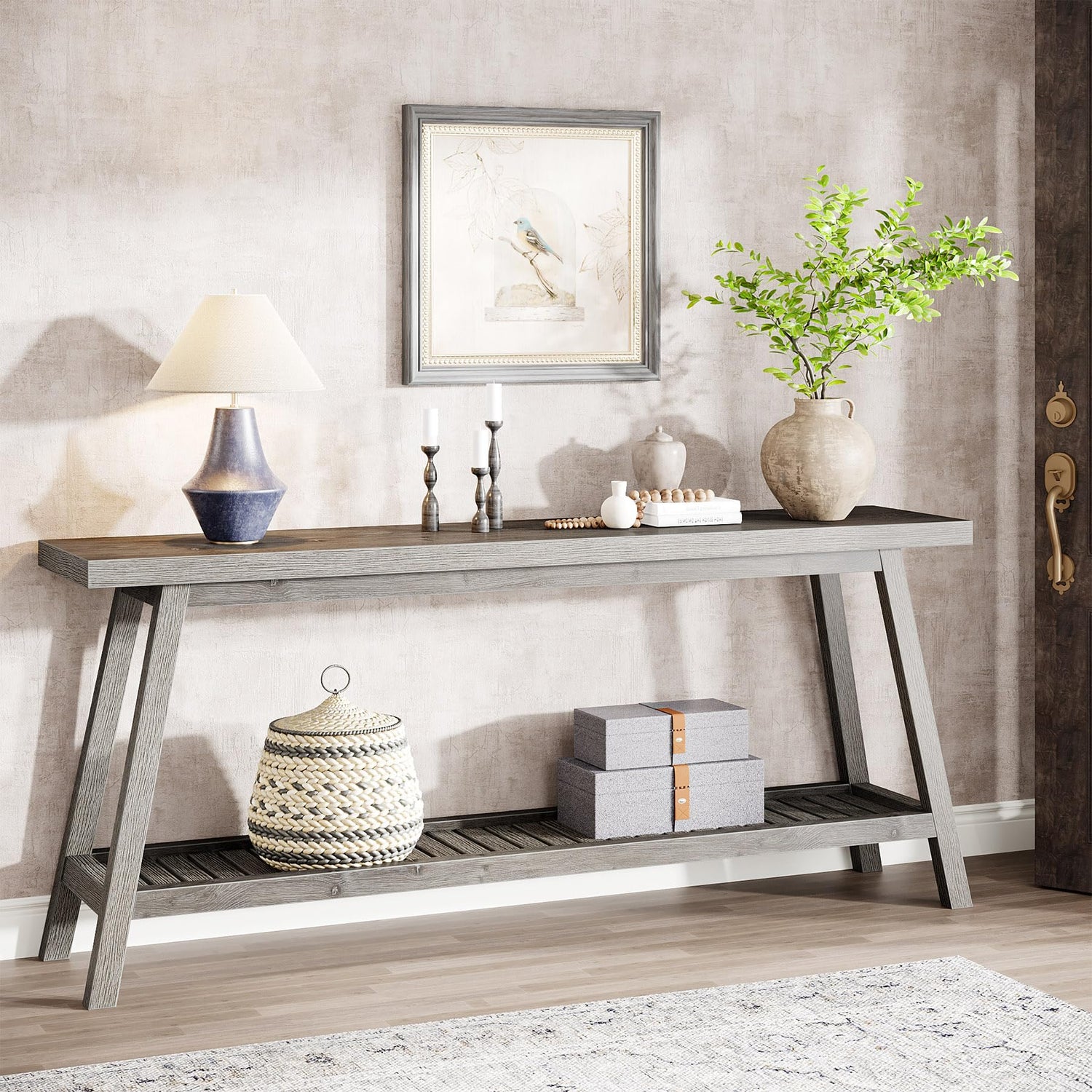 Tribesigns Farmhouse Console Entryway Table: 70.9 Inches Extra Long Console Table for Entryway, 2-Tier Narrow Wood Foyer Sofa Couch Table for Hallway, Entrance, Living Room, Grey