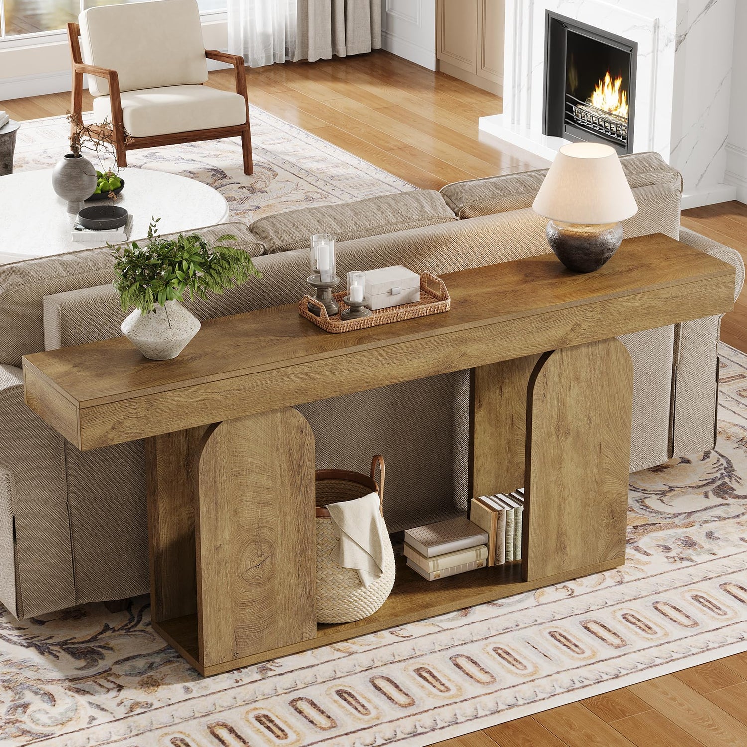 Tribesigns Farmhouse Wood Console Table, 70.9-Inch Entryway Accent Table with U-Shaped Base, 2-Tier Extra Long Sofa Tables for Entrance, Hallway, Living Room, Light Brown