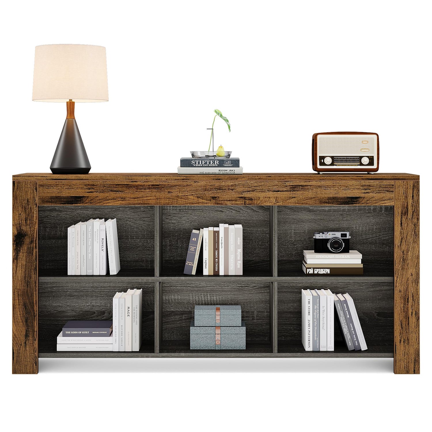 Transform your space with the Tribesigns Industrial Rustic 6-Cube Horizontal Bookcase, where style meets storage!
