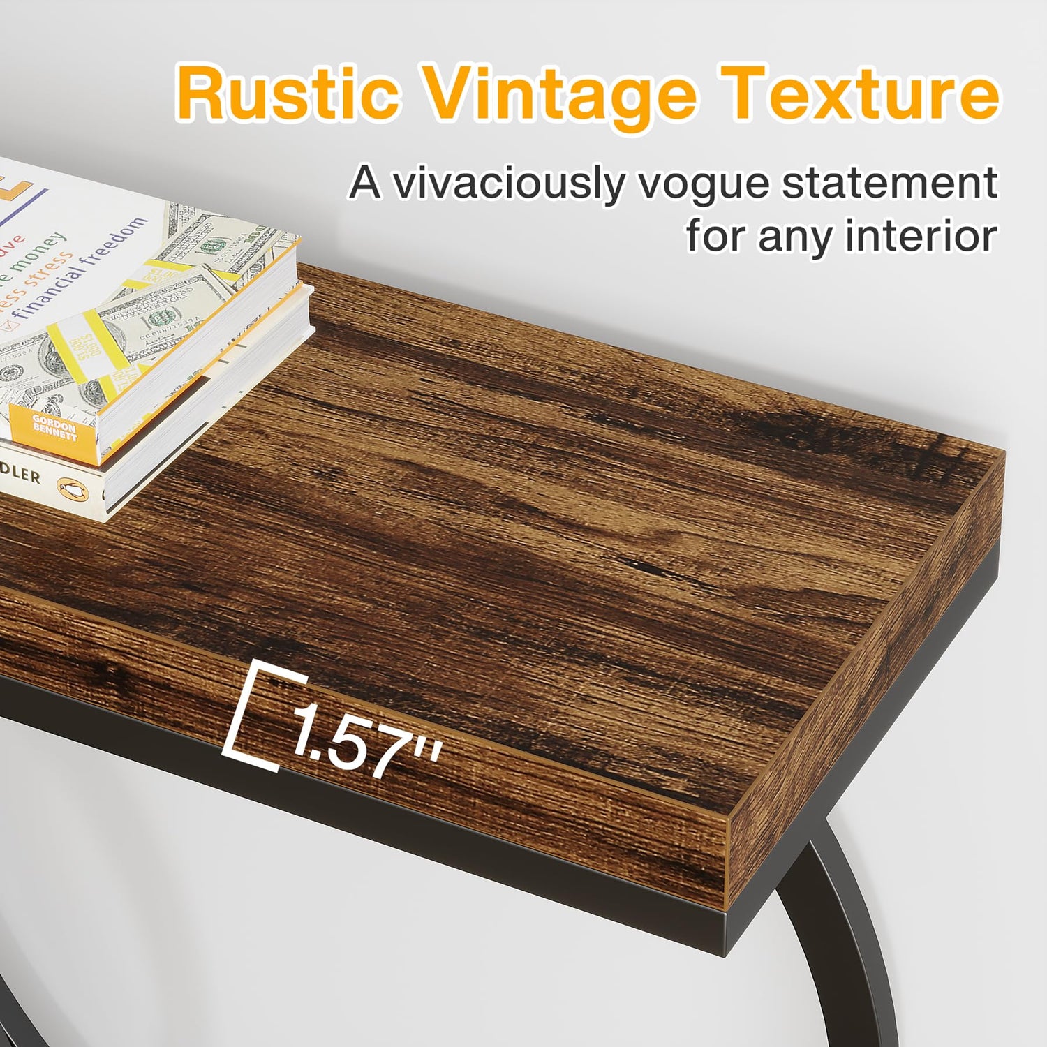 - 【Large Storage Tabletop】-Measuring 55.1" W x 11.8" D, the long sofa table constructs from 1.57" thickened MDF and rustic brown finish with unique and natural texture, creating plenty of room for art deco inspiration shine. The smooth surface is anti-scratch, waterproof, and easy to clean.