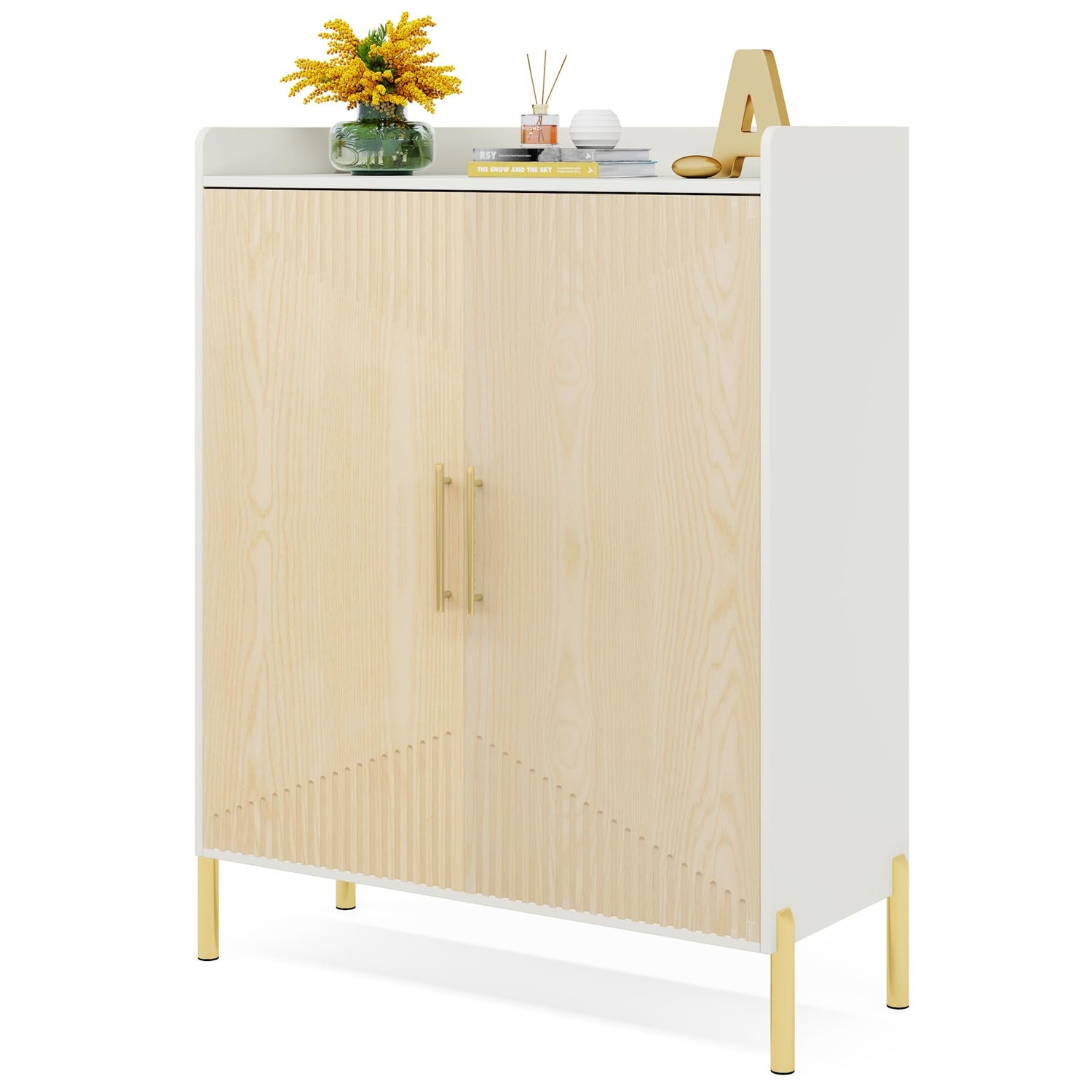 - 【CHARMING&VERSATILE】With a classic white finish, gold polished legs, and slim metal handles on the carved design doors, our modern shoe cabinet creates an elegant chic look that complements any interior style. It not only can be used as a shoe rack cabinet in the entrance but also as a storage cabinet in the hallway, living room, bedroom, etc.