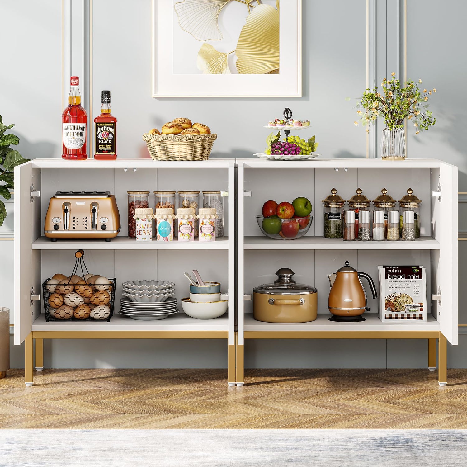 - SUPER STURDY CONSTRUCTION: The buffet cabinet with storage is made of high-quality particle board and boasts powder-coated sturdy metal legs. Solid construction with excellent workmanship makes this buffet storage cabinet super durable, stable, and sturdy. Adjustable foot pads keep the sideboard stable on uneven floors.