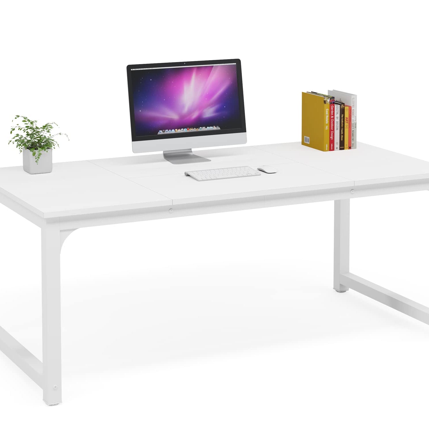 Tribesigns Modern Computer Desk, 63 x 31.5 inch Large Executive Office Desk Computer Table Study Writing Desk Workstation for Home Office, Spliced Desktop, White
