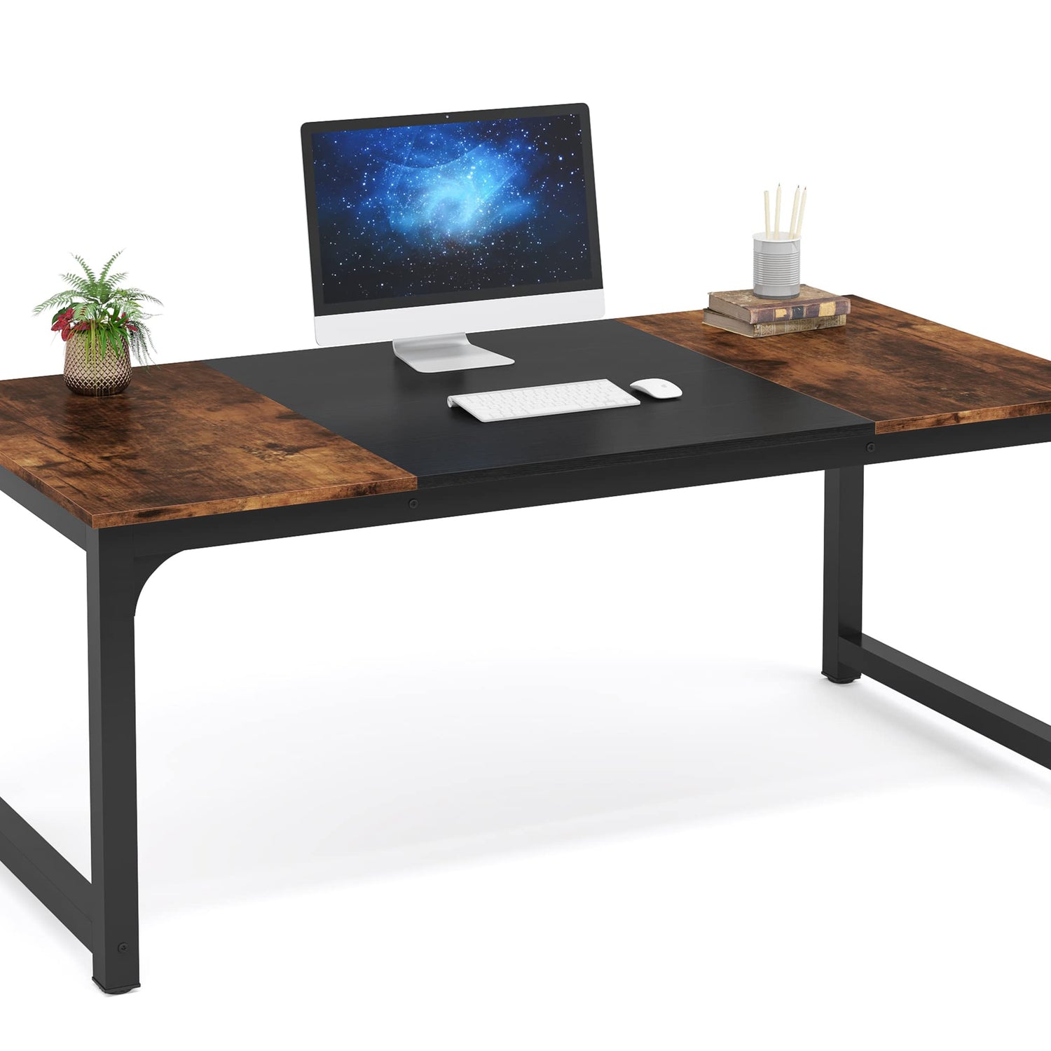 Tribesigns Modern Computer Desk, 63 x 31.5 inch Large Office Desk Computer Table Study Writing Desk Workstation for Home Office, Vintage Black Metal Frame