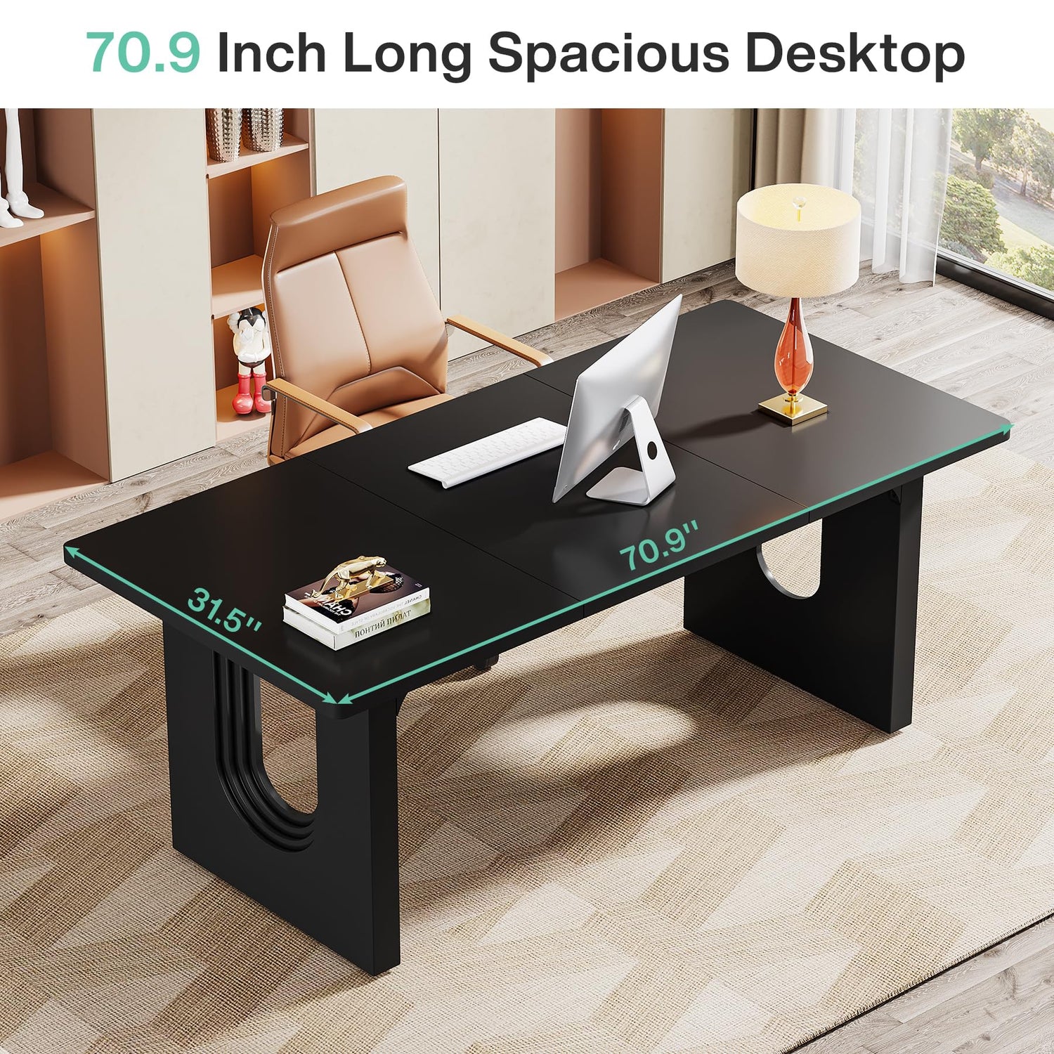 Tribesigns Modern Executive Desk, 70.9" Large Office Computer Desk, Conference Table Meeting Room Table, Simple Workstation Business Furniture for Home Office, Black