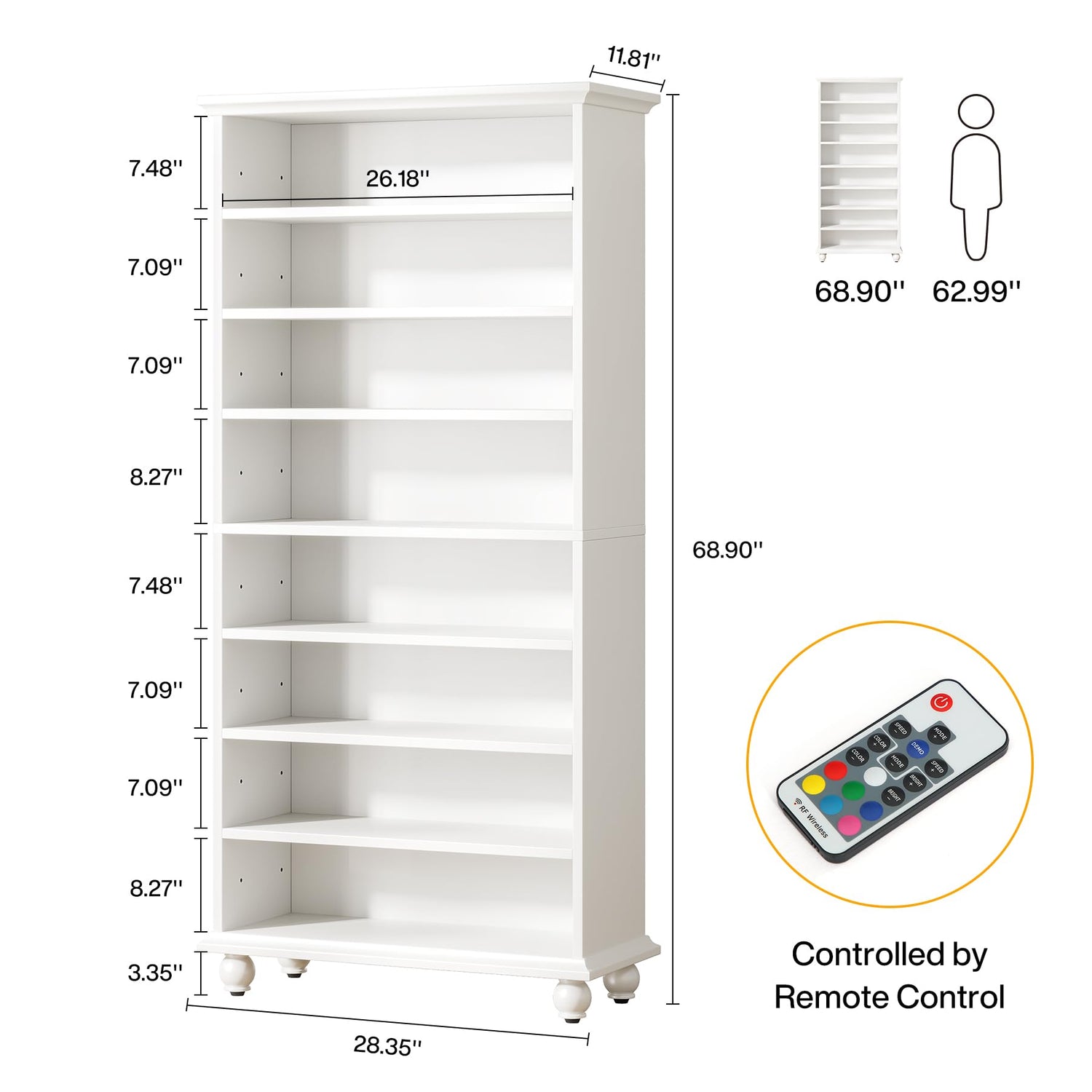 - Grandeur Illuminated: Your shoe collection becomes an enchanting gallery display, with 9 expansive layers skillfully adorned with adjustable LED lights that offer a youthful dance of 64 splendid colors. A symphony of light and color adds spark to your collection.