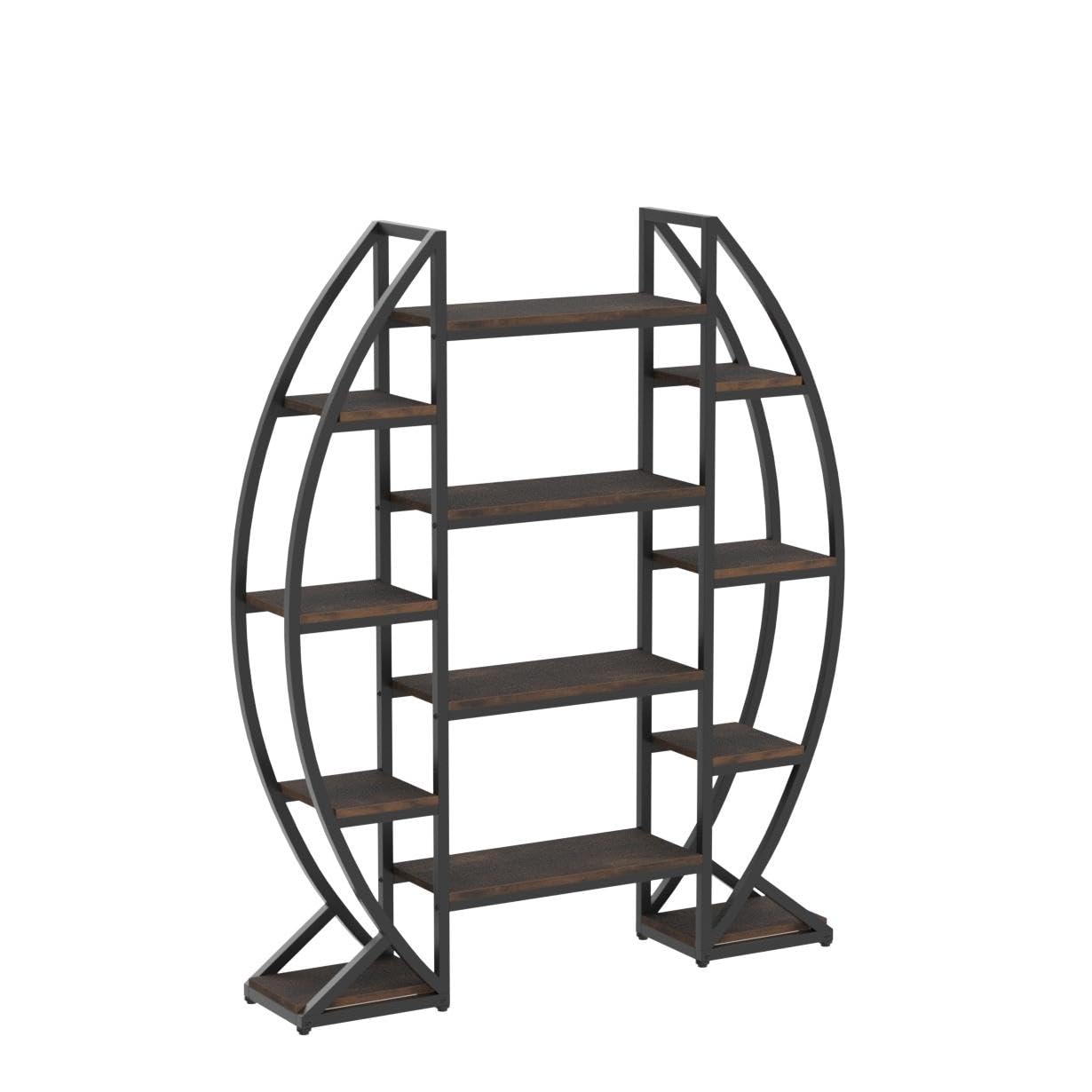 Tribesigns 55" Industrial Oval 5-Tier Bookcase - Triple Wide Etagere in Rustic Brown