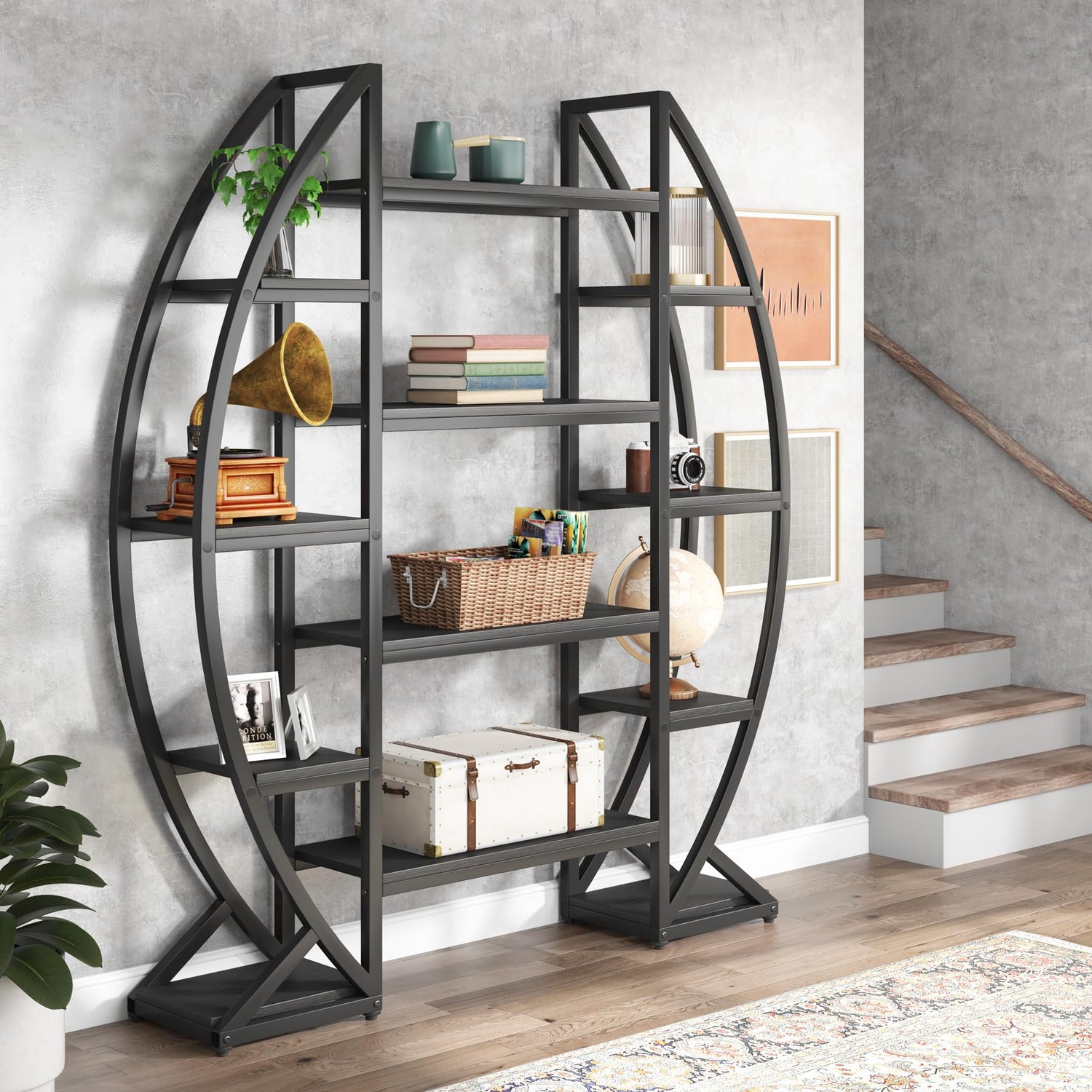 Tribesigns Oval Bookshelf, Triple Wide 5 Tiers Etagere Bookcases, Industrial Display Shelves for Living Room (55", Black)