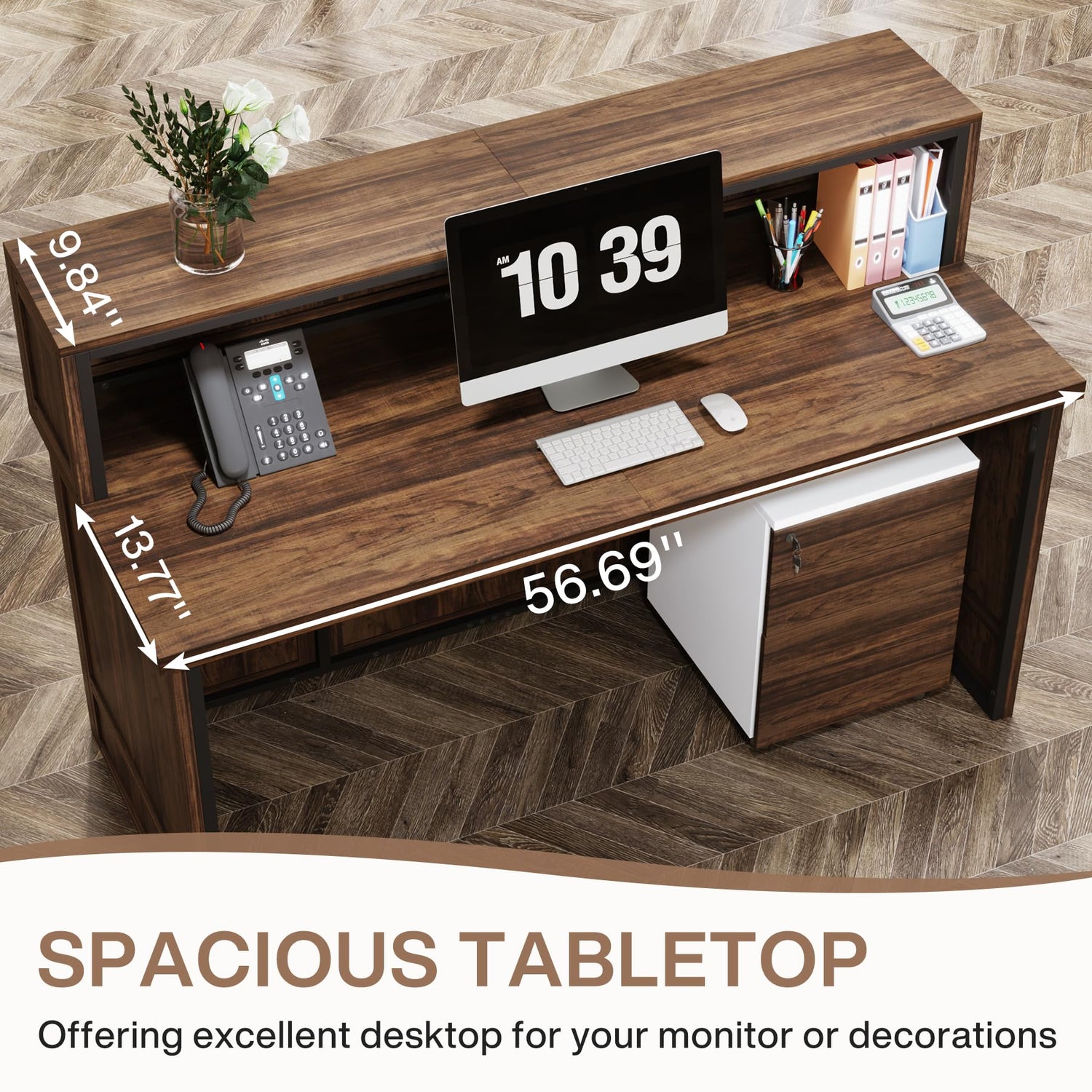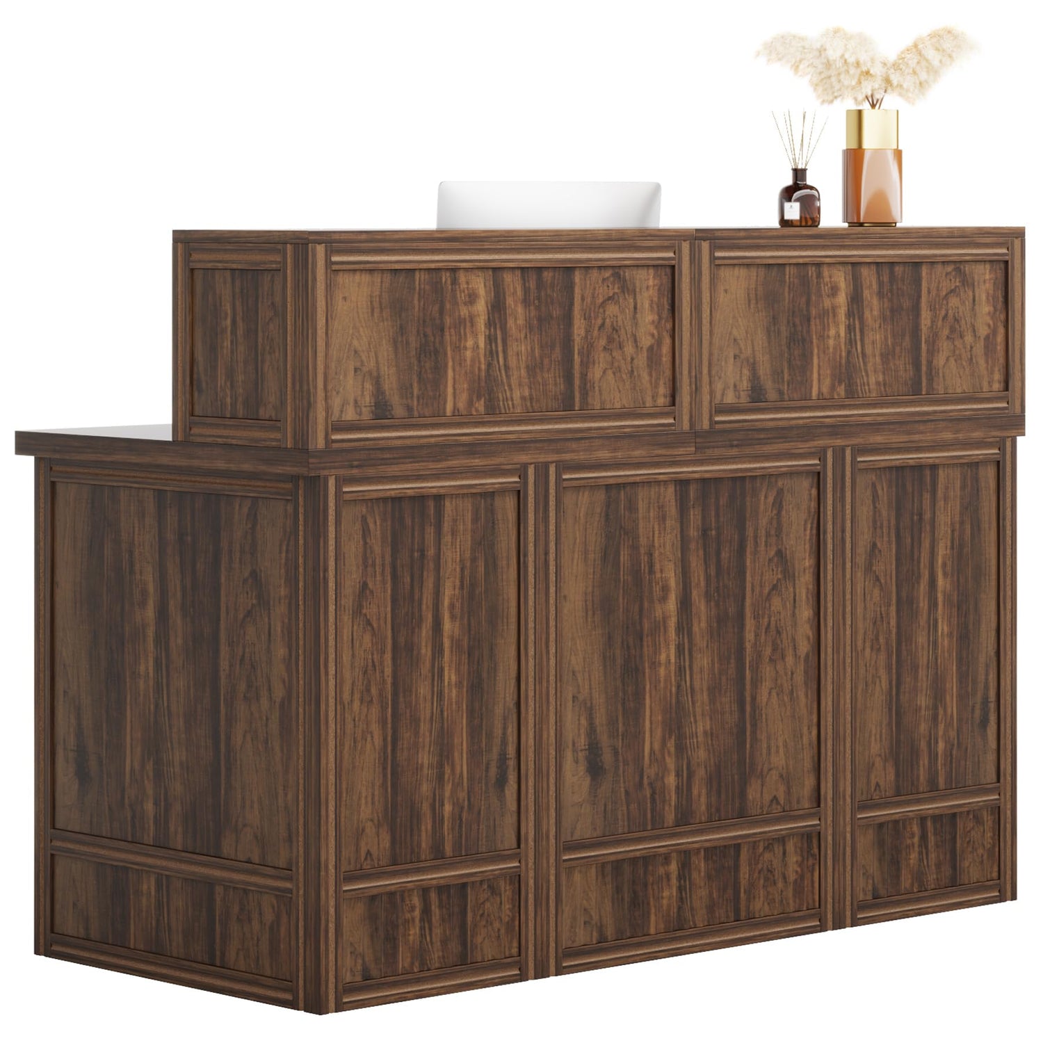 Tribesigns Reception Desk with Counter, 57-Inch Rustic Front Receptionist Table, Boho Welcome Desk Checkout Counter for Office, Retail, Lobby, Beauty Salon (Brown)