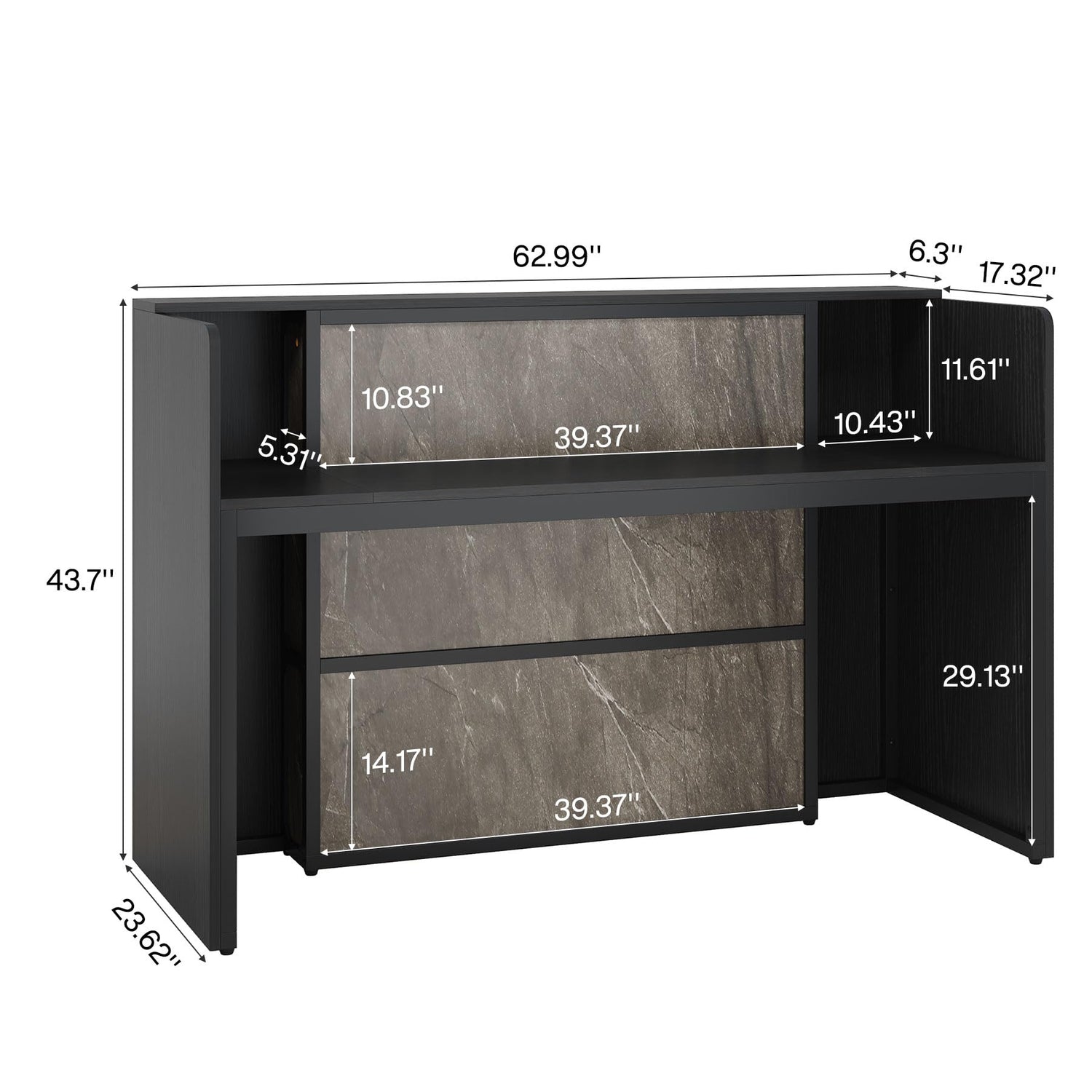 - Spacious Working Area: Offering a large counter table surface, the Tribesigns Reception Desk comfortably accommodates all the necessities of a busy work environment. With its expansive tabletop, it provides ample space for computers, telephones, writing materials, and other office essentials. It is an ideal investment for your store, shop, clinic, or office, aiming to lead your business with style and professionalism