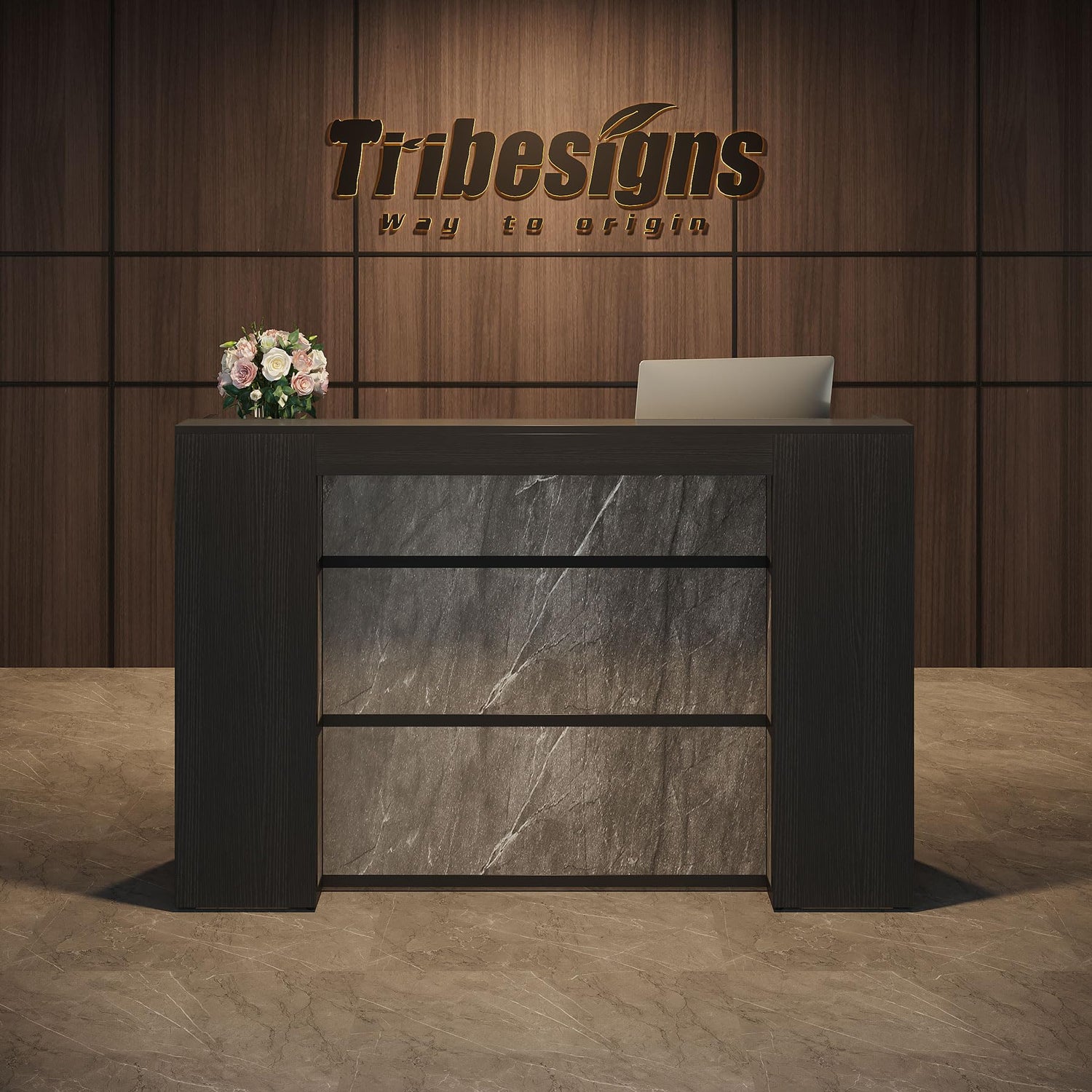 - Transformative Design: The Tribesigns Reception Desk with LED Lights is a phenomenal blend of innovative design and optimal functionality. Featuring a large 63-inch front counter desk, it is ideally suited for use in diverse environments like checkout points, lobbies, salons, or retail shops. The black and brown color scheme implies a refined elegance, making your reception area an inviting space for customers and clients alike