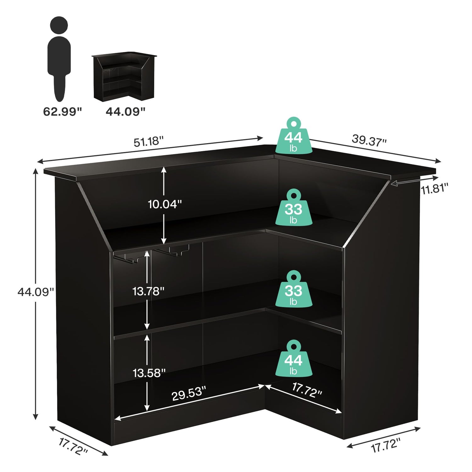 - Ample Storage: Featuring 2-tier additional storage space and a stemware rack beneath the desktop, this reception room desk allows you to store documents, office supplies, and wine glasses. The reception desk is perfect for your storage needs
