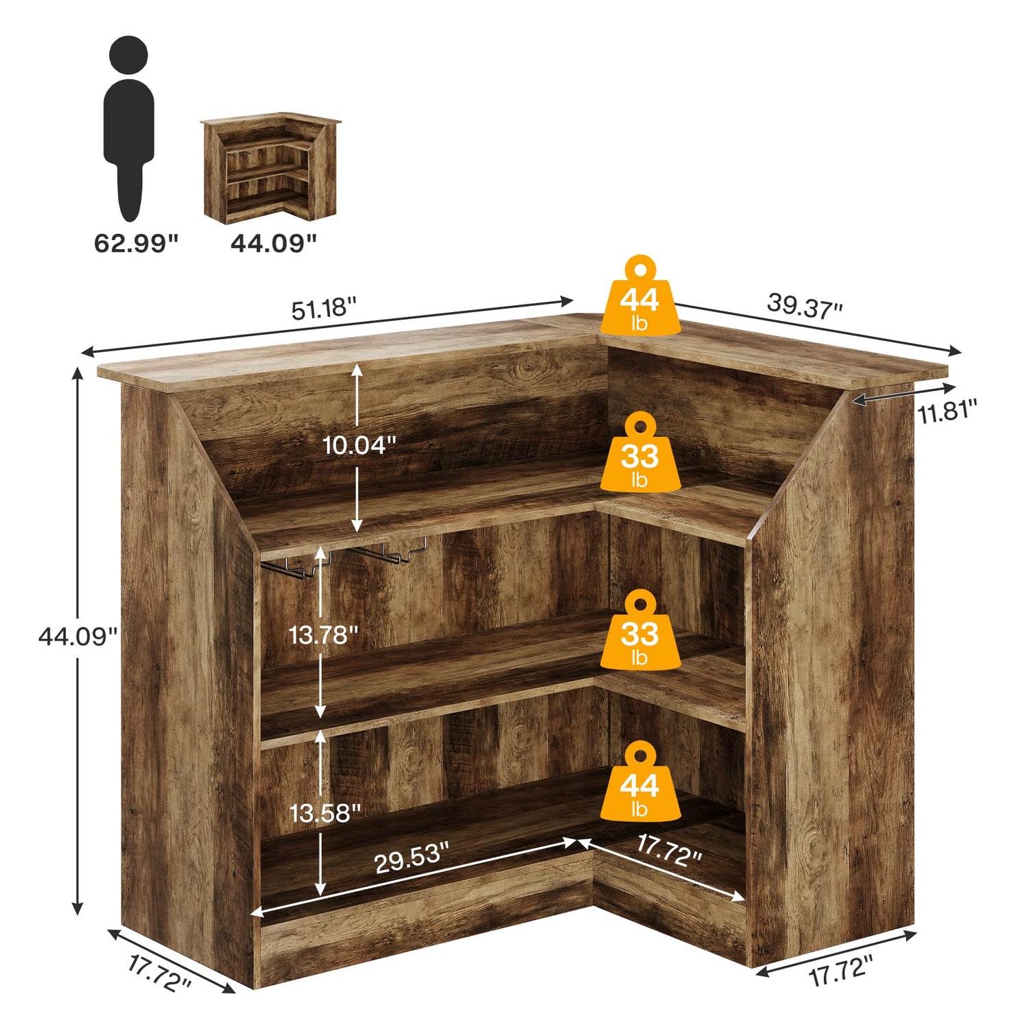 - Ample Storage: Featuring 2-tier additional storage space and a stemware rack beneath the desktop, this reception room desk allows you to store documents, office supplies, and wine glasses. The reception desk is perfect for your storage needs