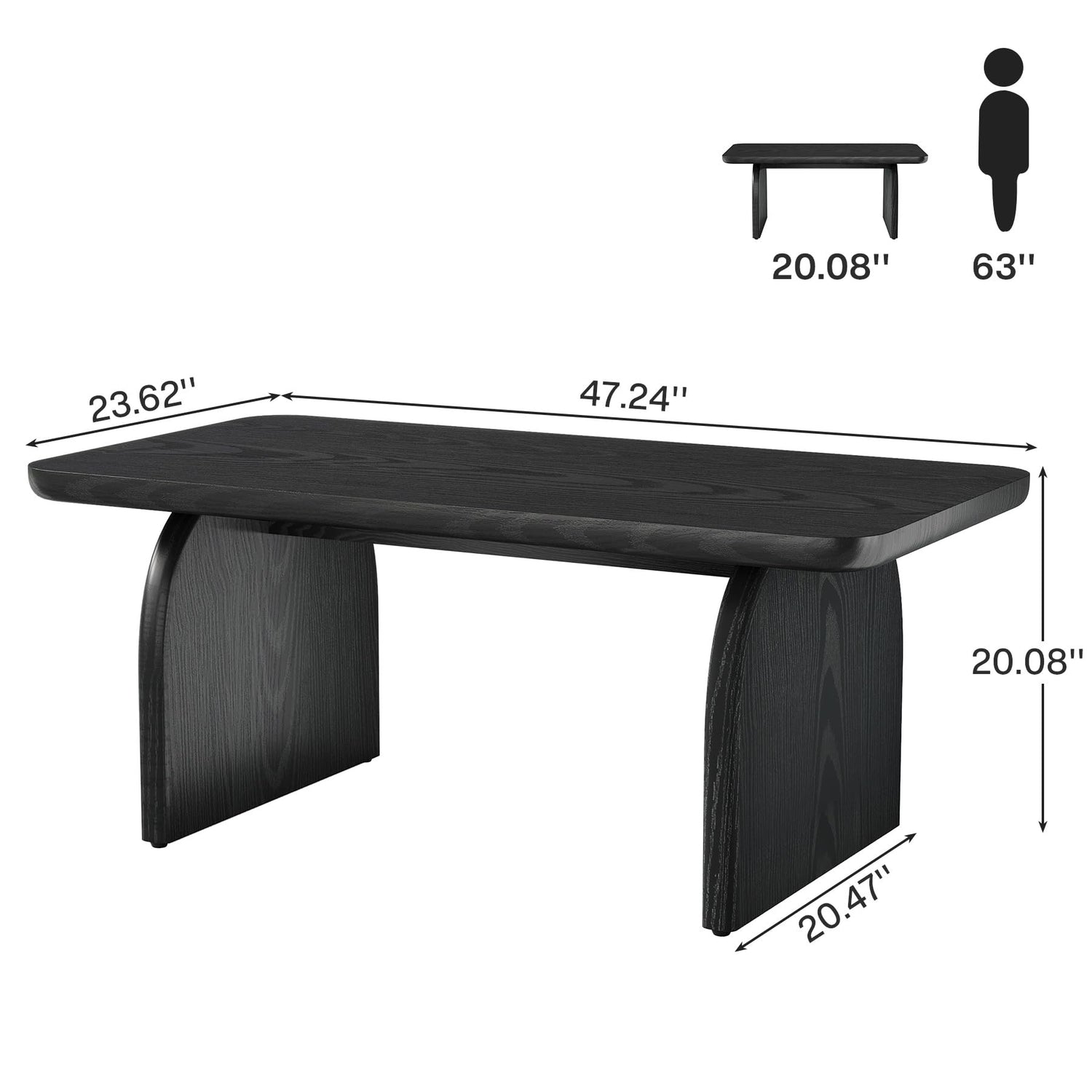 Tribesigns Rectangle Coffee Table, 47-Inch Wood Rectangular Living Room Table, Farmhouse Accent Center Low Cocktail Tea Table with Sturdy Base & Rounded Corners, Easy Assembly (Black)