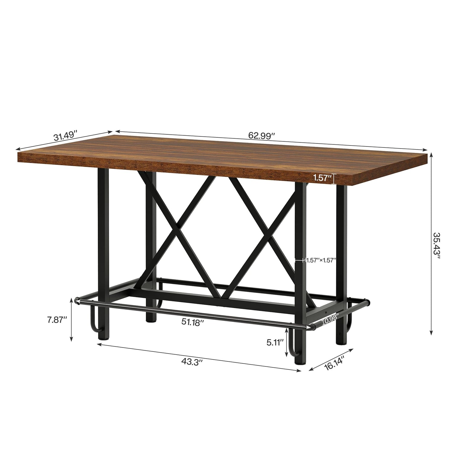 Tribesigns Rectangular Counter Height Dining Table with Metal Footrest for 6 People, 35.43" Tall (Rustic Brown)