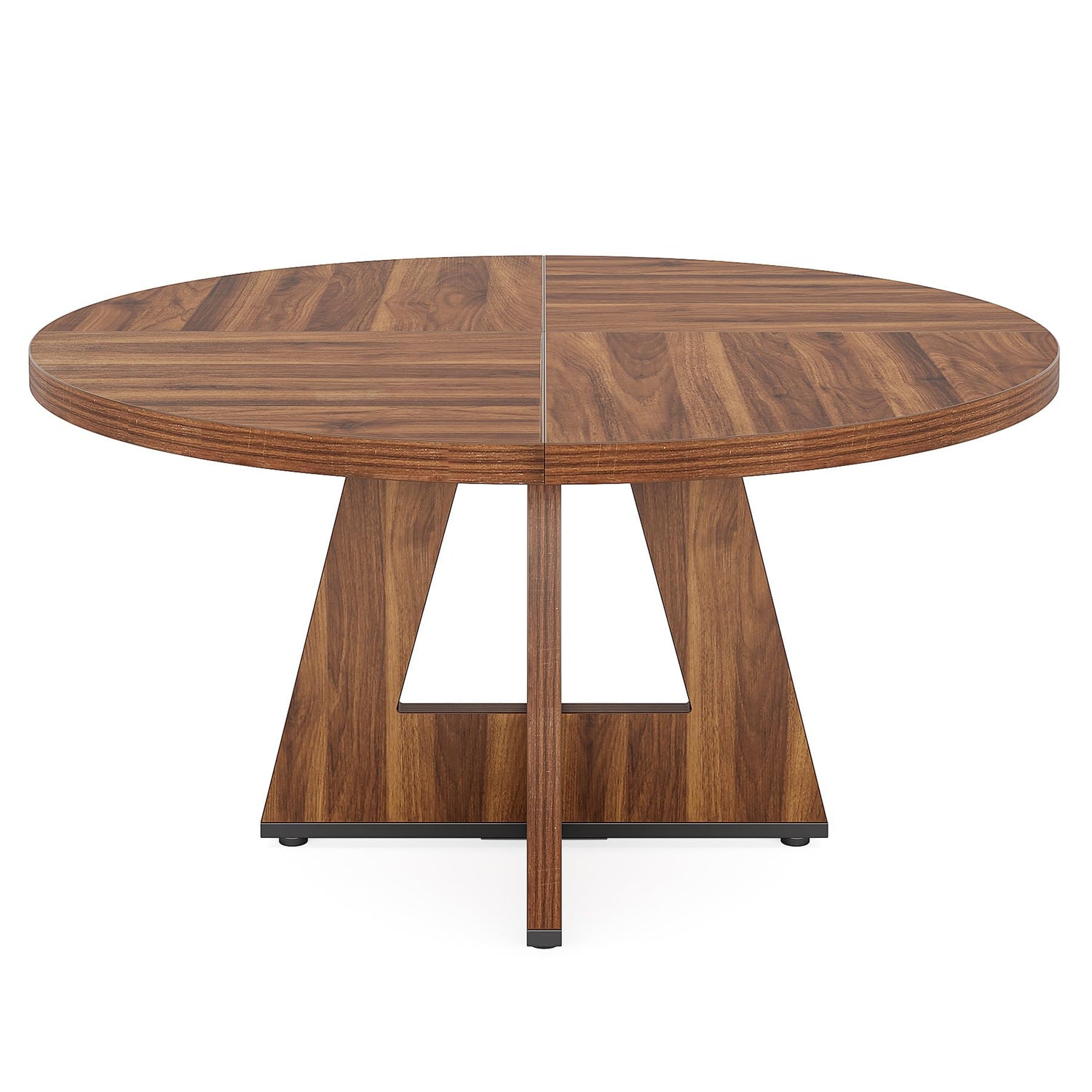 - [ Farmhouse Round Dining Table ] - The spacious tabletop is consists of 4 Engineered wood board. Designed with a classic farmhouse look, Tribesigns kitchen dining table will add a touch of rustic elegance to any space. Its charming farmhouse look and retro brown color exudes warmth and coziness, creating a welcoming atmosphere for your family and friends to gather around.