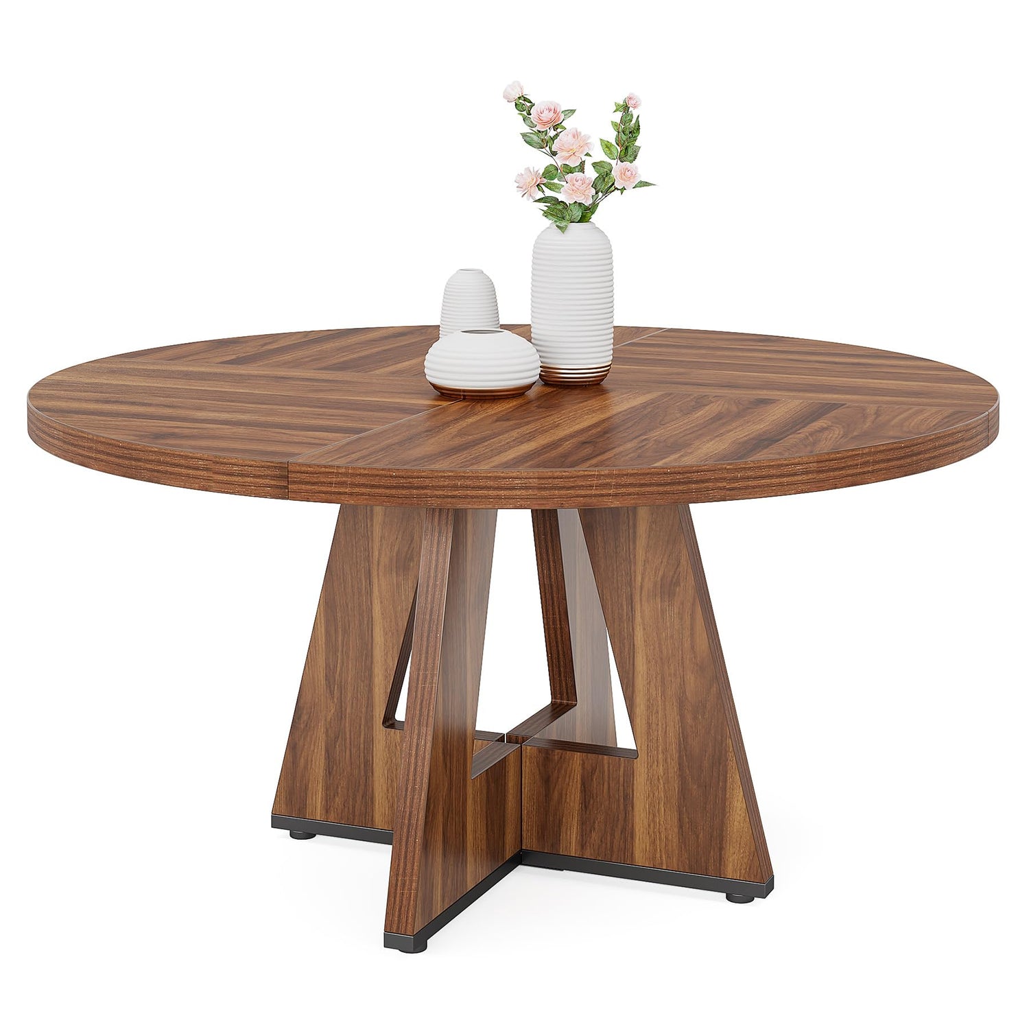Tribesigns Round Dining Table Wood Kitchen Table for Dining Room Living Room, 47 inch Dining Room Tables for 4 People, Farmhouse Dinner Table with Wooden Table Top and Legs, Rustic Brown(Only Table)