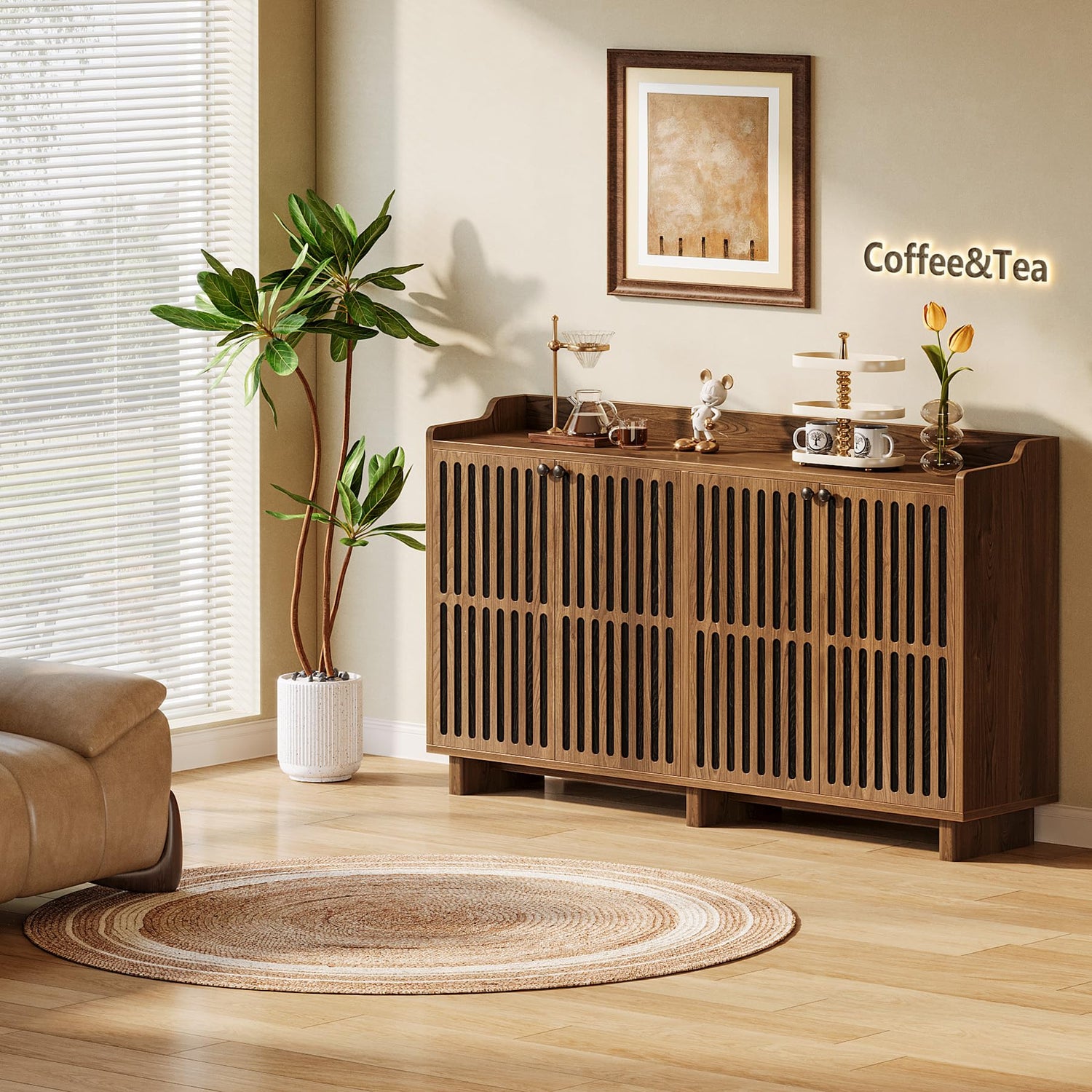 - Multifunctional Accent Cabinet: Adaptability is at the core of this console cabinet. It not only functions as a buffet cabinet in the kitchen but also serves as a graceful TV console in the living room. You can even repurpose it as a coffee bar sideboard in the dining room when you fancy a delicious cup of coffee in the afternoon