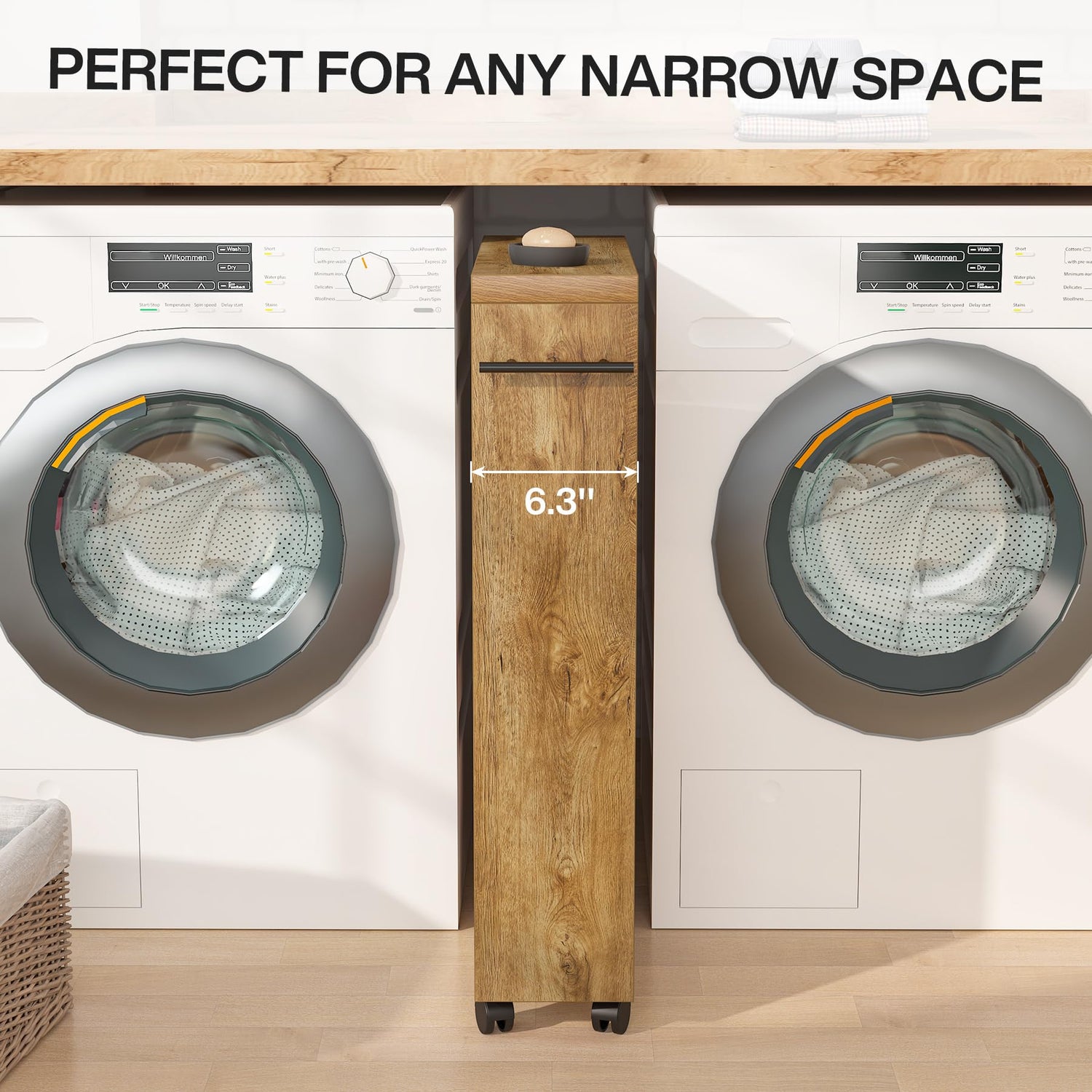 - 【Storage Solution for Narrow Space】This slim storage cart with 6.3” width is specially designed for narrow space. It can perfectly fit in gap between the cabinet and fridge or any other tight spot to help organize your belongings conveniently and get rid of clutter.