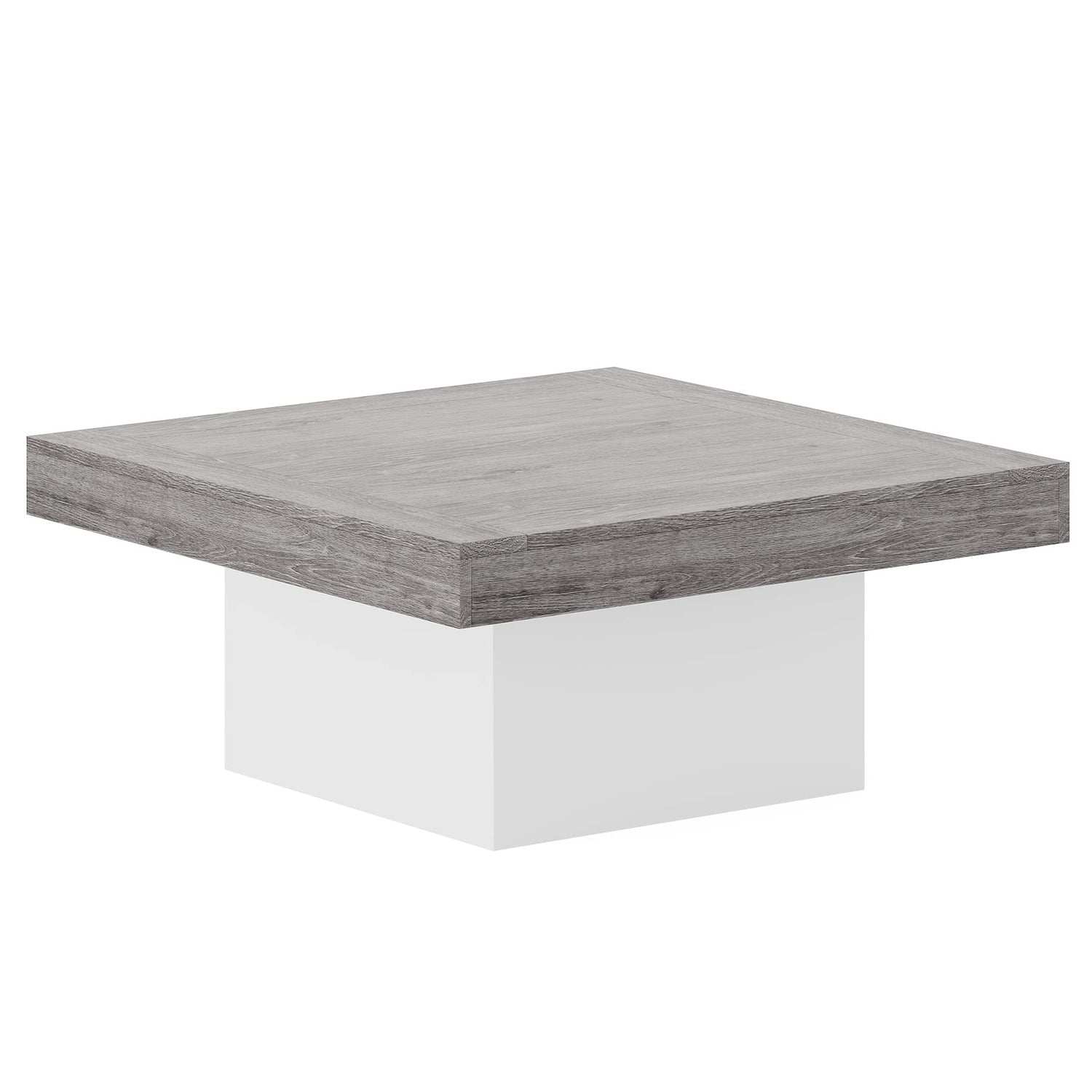 Tribesigns Square LED Coffee Table Grey and White Engineered Wood Coffee Table Low Coffee Table for Living Room Rustic Farmhouse Coffee Table