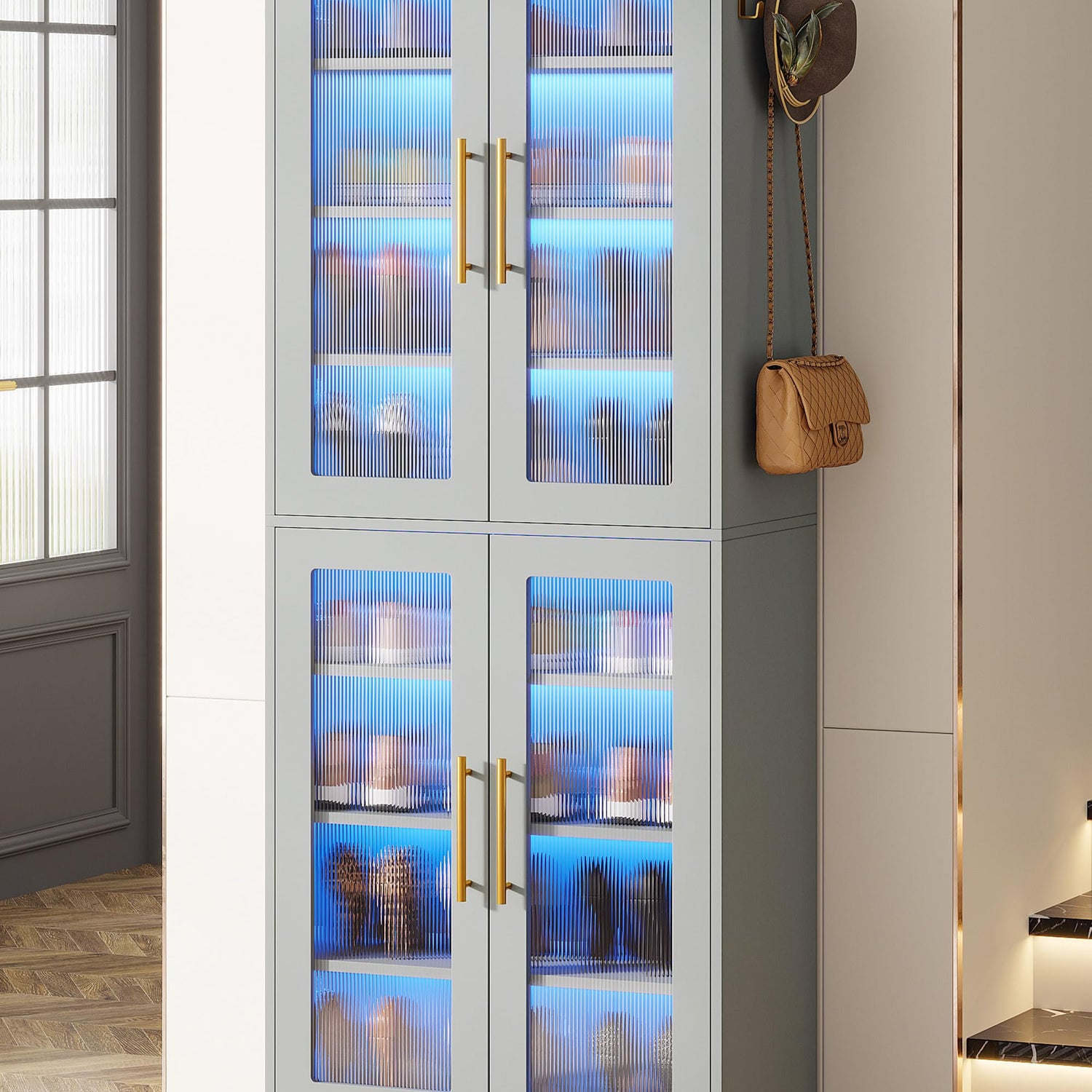 Tribesigns Tall Shoe Cabinet with Acrylic Doors and LED Lights, 8-Tier Entryway Shoe Organizer Storage Rack with Adjustable Shelves and Hanging Hooks for Narrow Closet, Hallway, Living Room, Gray