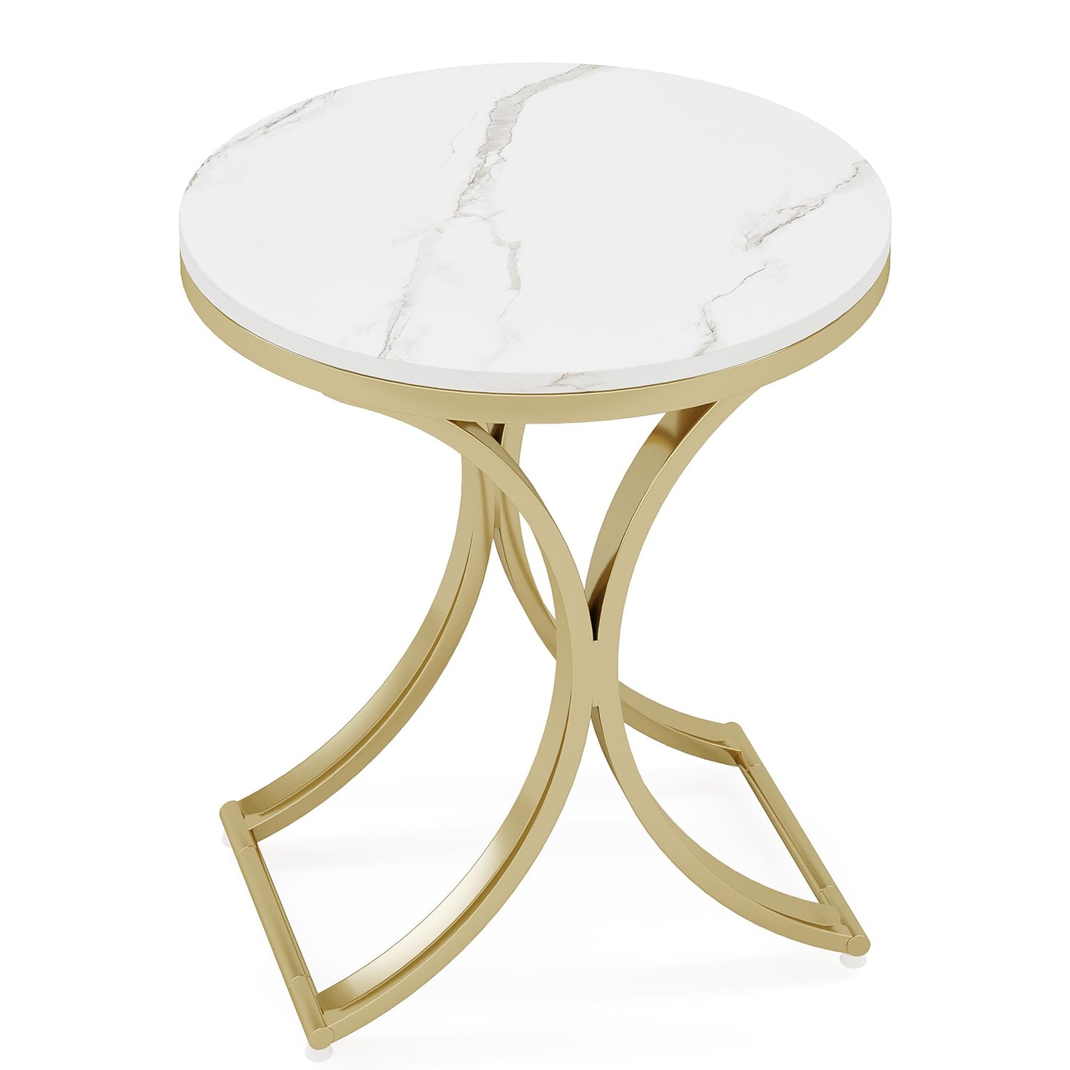 Tribesigns White and Gold End Table Small Round Faux Marble Sofa Side Table (1)