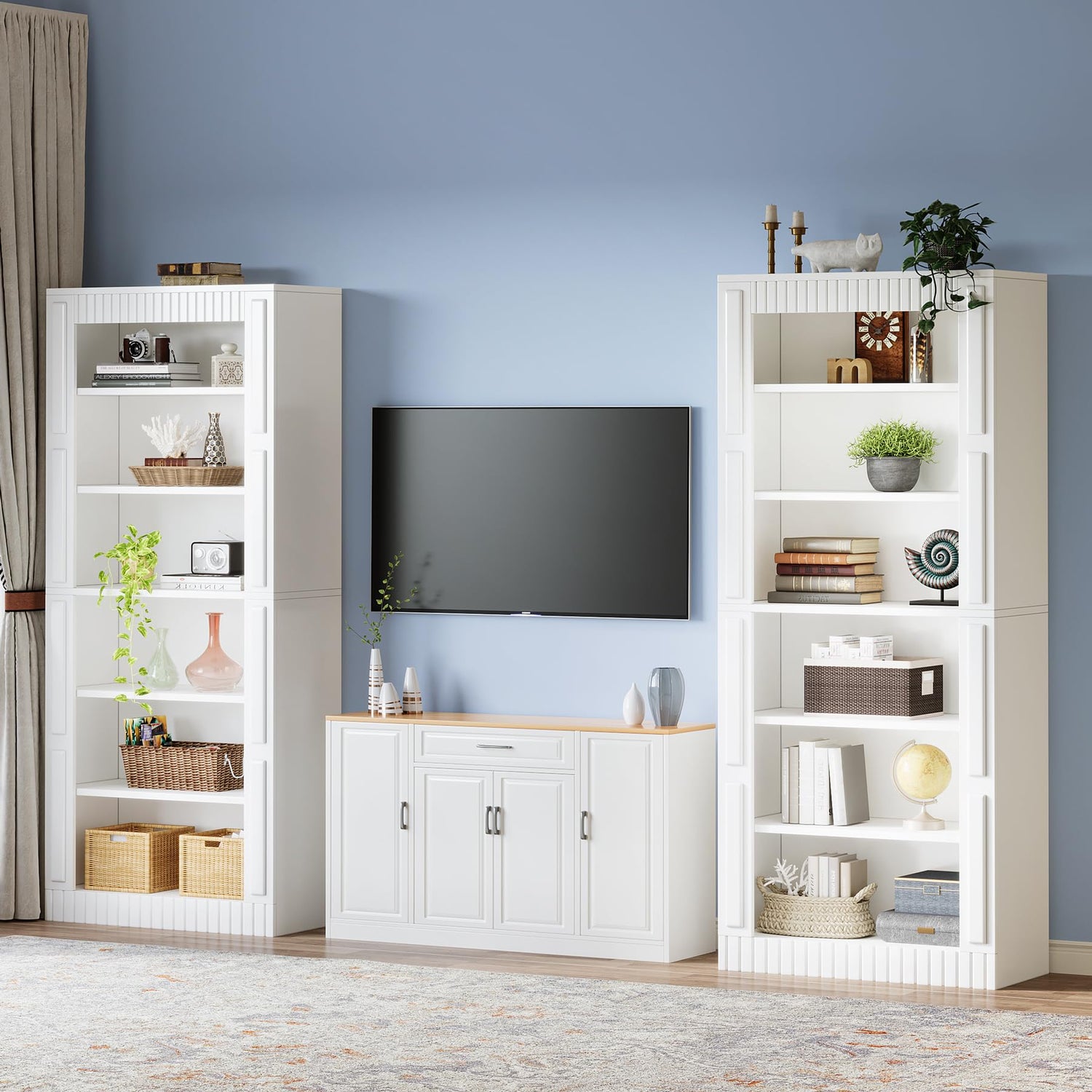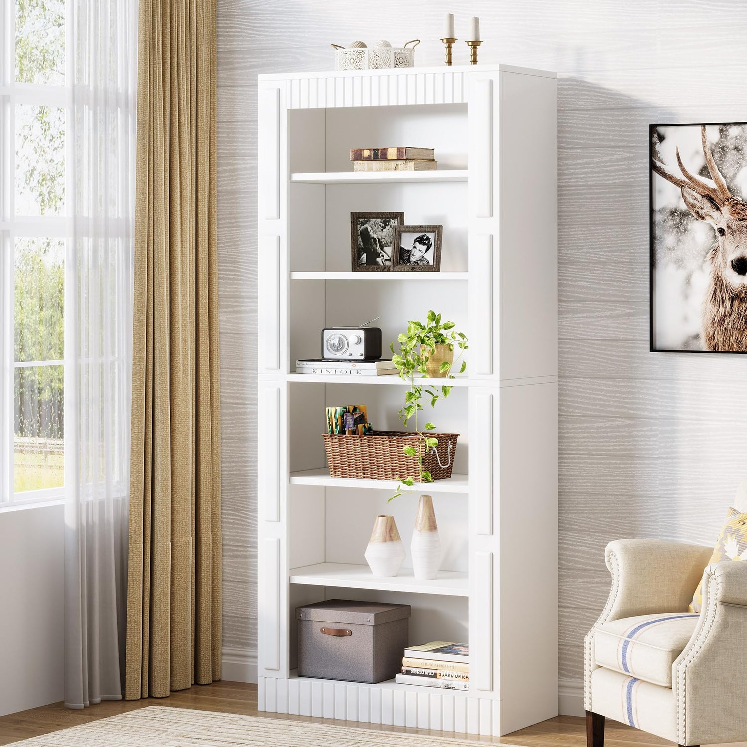 Elevate your home decor with the Tribesigns Modern White 6-Shelf Tall Bookcase Set of 2, a stunning addition that seamlessly blends style and functionality. Designed to make a statement, this sophisticated bookcase features clean-lined paneling and a sleek white finish that can transform any room into a chic, modern space.