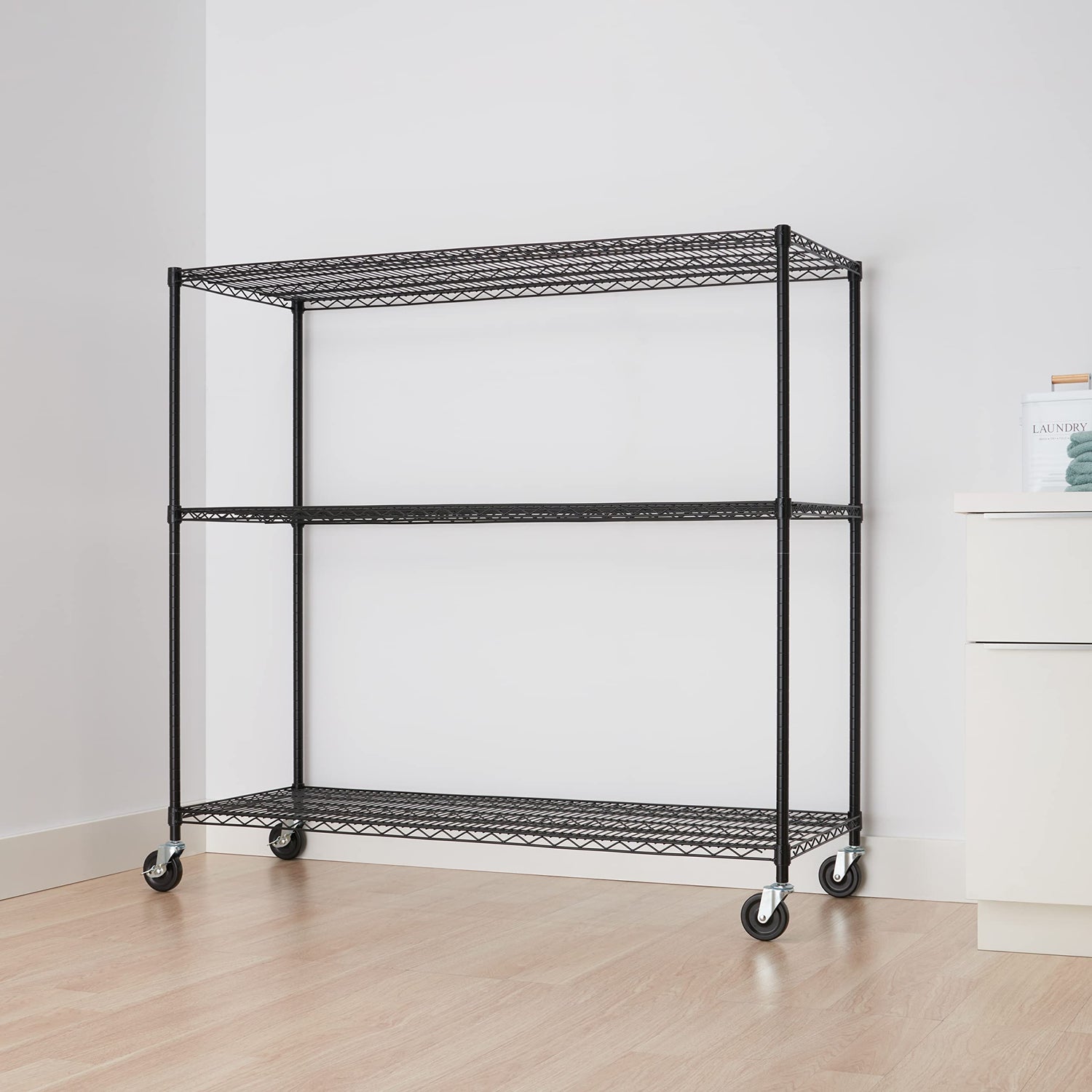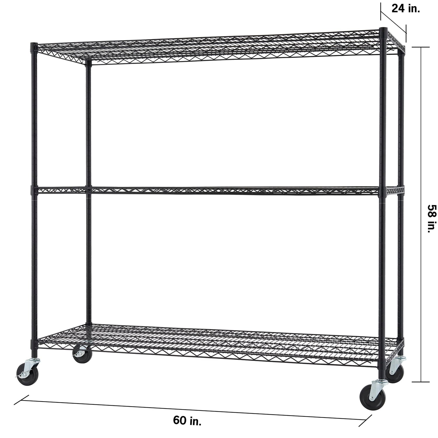 TRINITY Basics 3-Tier Adjustable Wire Shelving with Wheels for Kitchen Organization, Garage Storage, Laundry Room, NSF Certified, 600 to 1350 Pound Capacity, 60” by 24” by 54”, Black