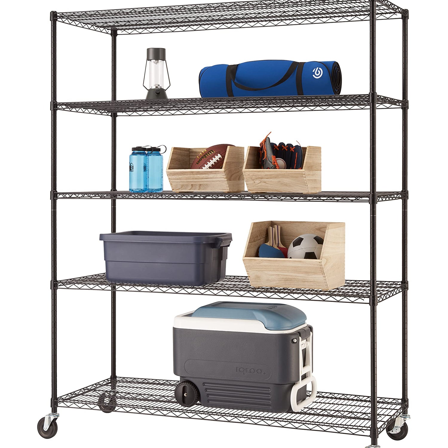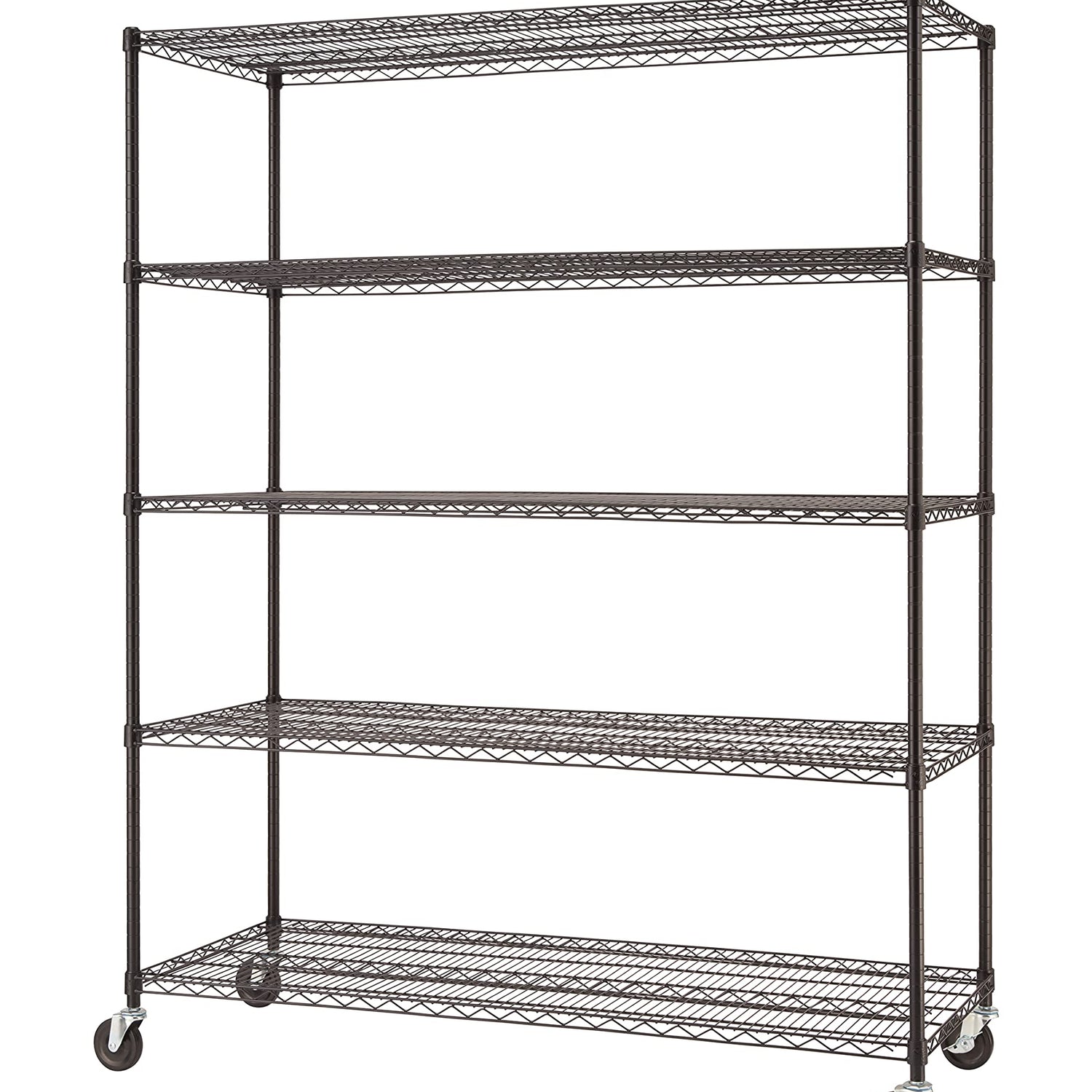 - HOME AND BUSINESS STORAGE: The TRINITY BASICS 5-Tier Wire Shelving Rack is ideal for garage shelving, kitchen storage, or laundry room organization; Store boxes, supplies, tools, and more; These storage shelves make a great closet organizer