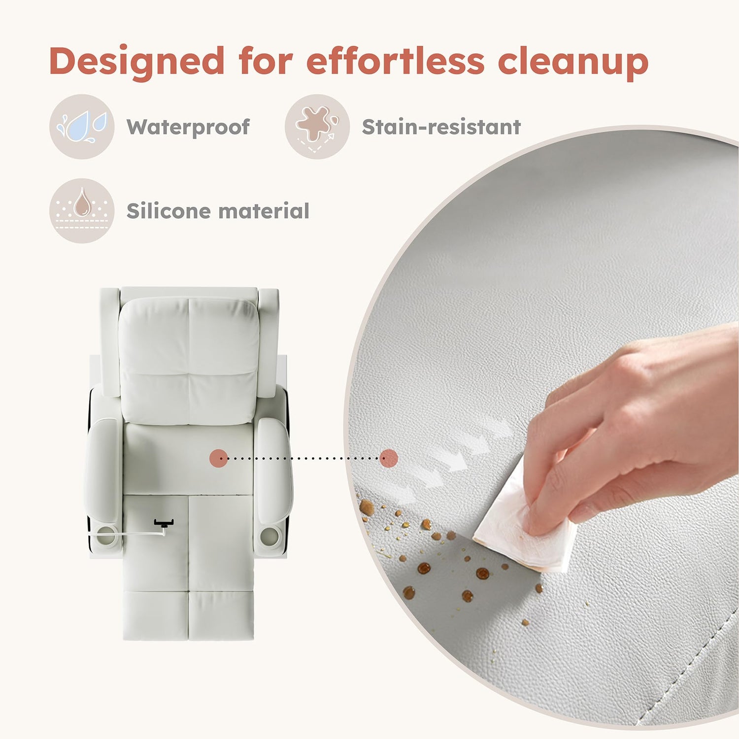 Triple Motor Power Swivel Rocker Recliner Chair with Adjustable Armrests for Adults Elderly, FSC Certified Faux Leather Rocking Chair Nursery for Breastfeeding(White)