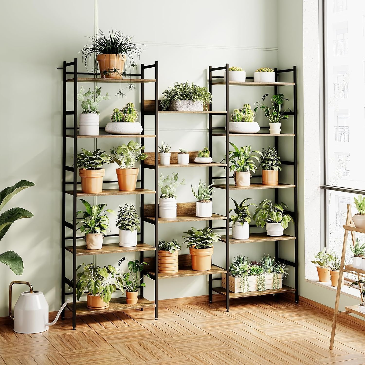 Triple Wide 5 Tier Bookcases and Bookshelves,Adjustable Industrial Style BookShelf With 14 Open Display Shelves,Metal Frame Wide Book Shelf Book Case for Bedroom Living Room Home Office Study Room