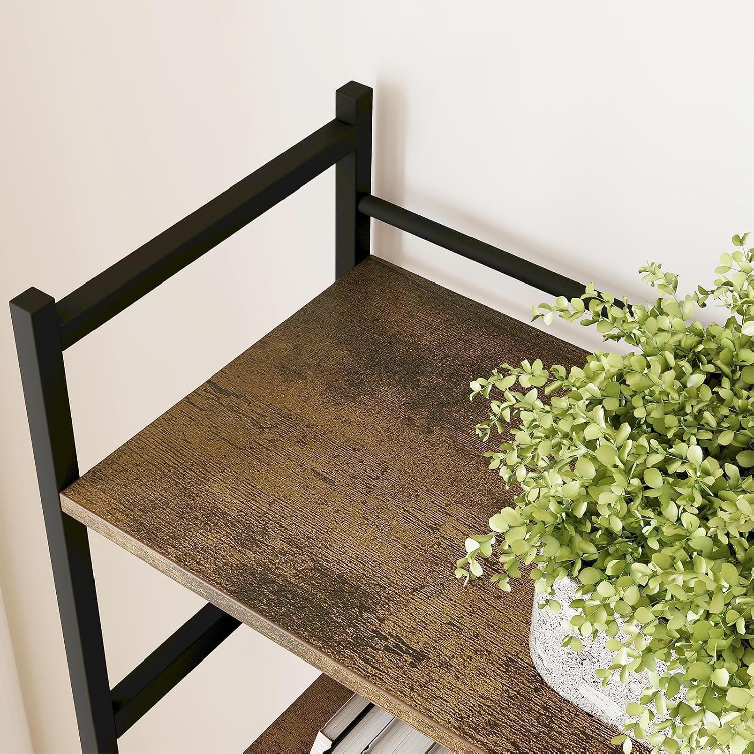- 【Stable and Safe Bookshelf】The 5-tier shelving bookshelf is made of high-density MDF and industrial style iron frame as materials, and it is paired with adjustable feet, which can be leveled on uneven floors to ensure stability and prevent the floor from being scratched when moving the bookshelf.