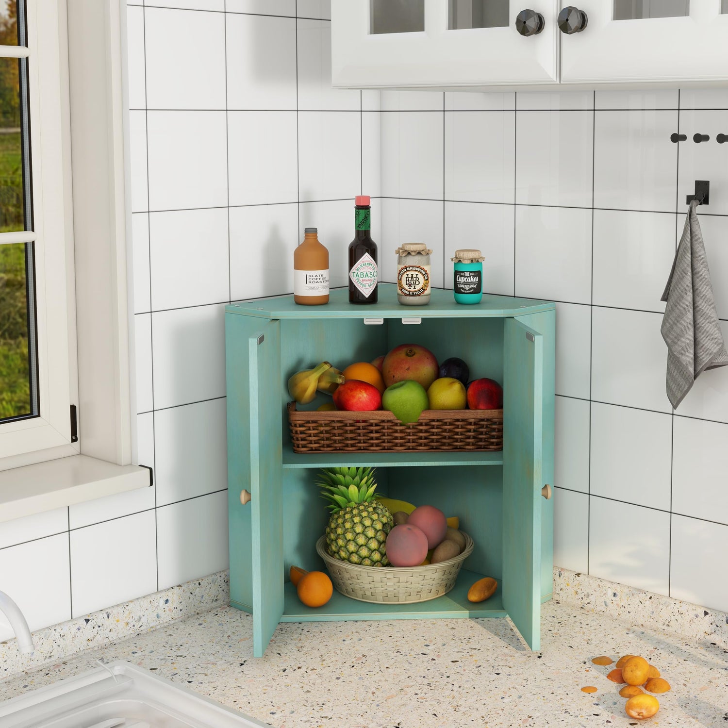 Trironsun Corner Bread Box for Kitchen Counter Double Layer Bamboo Bread Storage Container Large Capacity Bread Storage Bin Farmhouse Breadbox Organizer (Antique Blue)