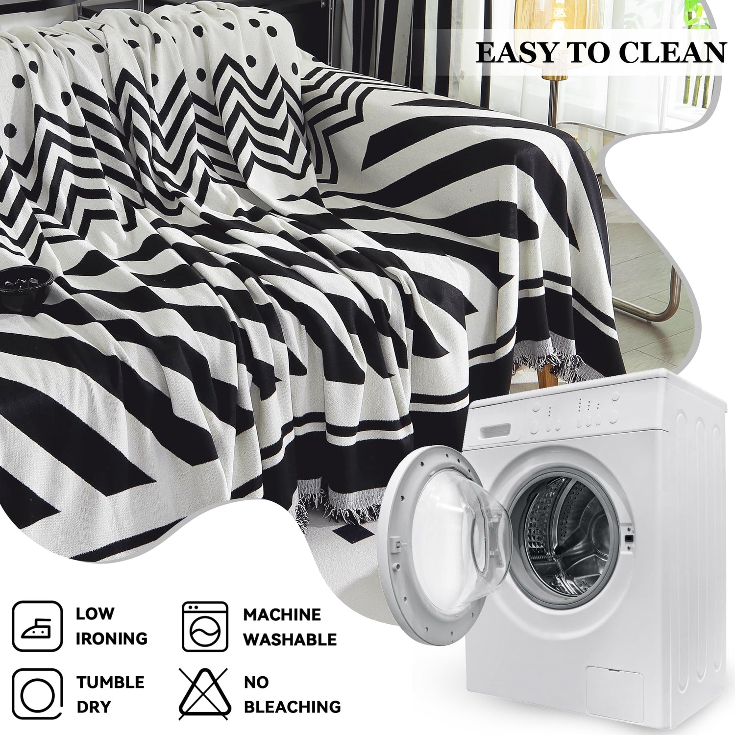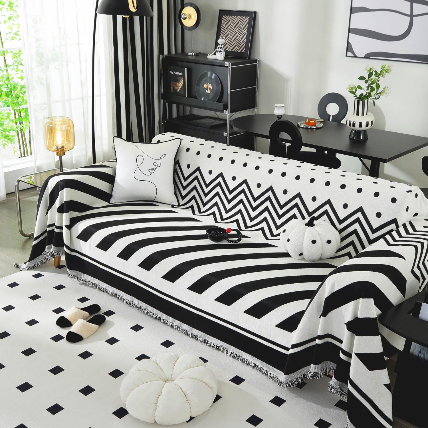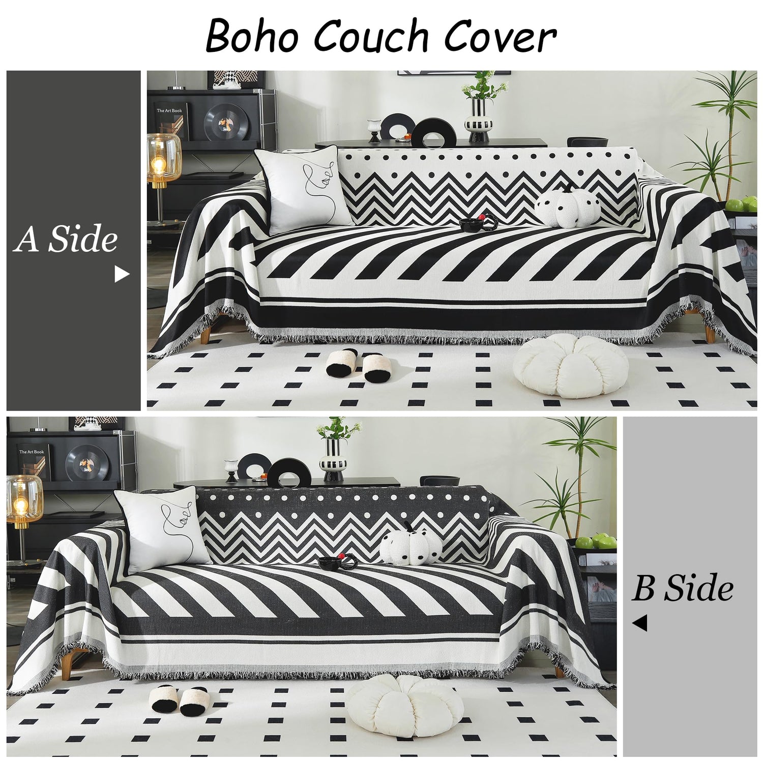 - Beautiful Sofa Protector: The reversible black white couch cover features a boho geometric pattern to give people a warm touch, the fringe edge adds extra elegance to your sofa and will beautify your home. Furniture protector covers can be draped over furniture like chairs, couches, or beds, and enjoyed outdoors in the backyard, camping, or on the beach to protect your couch from daily wear and tear and spills